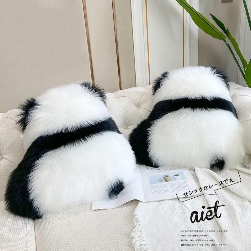 Cute Panda Back Shadow Plush Pillow - Trendy Sofa Cushion, Adorable Fluffy Floor Mat, Perfect for INS Style Home Decor, Ideal for Bedside Support and Comfort.
