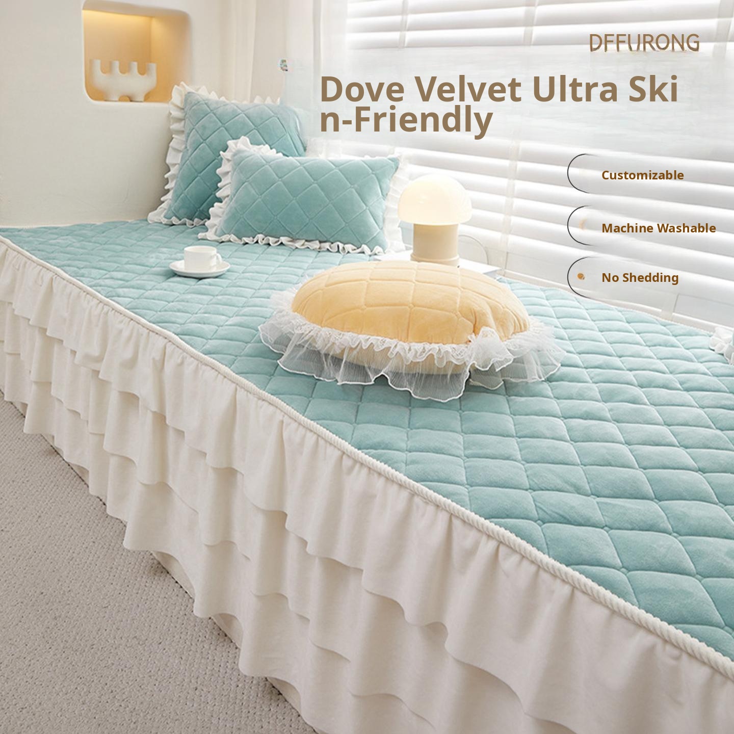 Chic Princess-Style Bay Window Cushion with Side Flaps – Luxurious Lightweight Non-Slip Mat for Bedroom and Balcony, Suitable for All Seasons