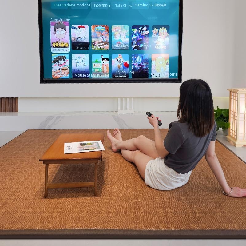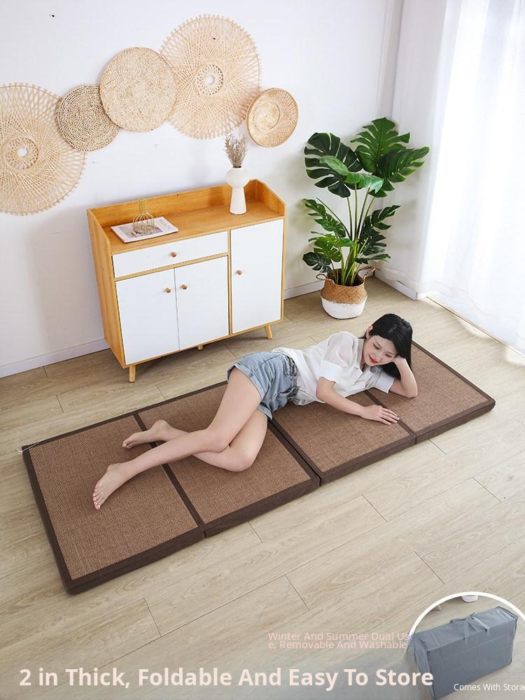 Foldable Summer Rattan Tatami Carpet - Perfect for Living Rooms, Guesthouses, and Tea Rooms. Enjoy Cool Comfort with This Seamless Grass Woven Mat, Ideal for Napping and Relaxation!