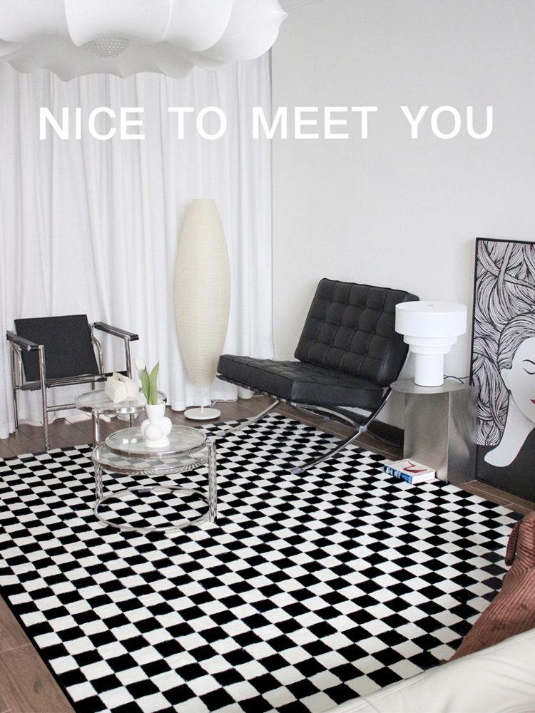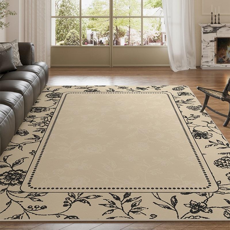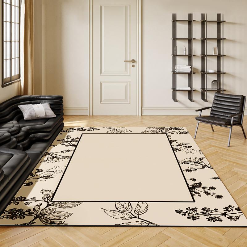 Elegant French Black and White Carpet - Luxurious Waterproof and Stain-Resistant Living Room Rug for Sofa and Coffee Table, Creamy Bedroom Bedside Mat