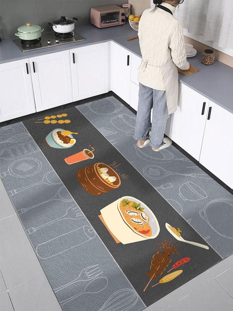 Nordic Non-Slip Kitchen Mat - Oil-Resistant, Easy-Clean Leather PVC Rug for Home Use, Durable and Stain-Resistant Kitchen Carpet