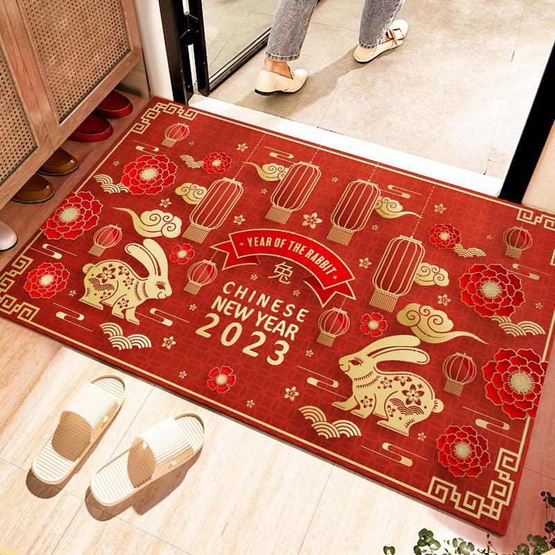 2023 Year of the Rabbit Festive Entrance Mat - Non-Slip Red Door Mat for Home, Perfect for New Year Celebrations and Welcoming Guests!