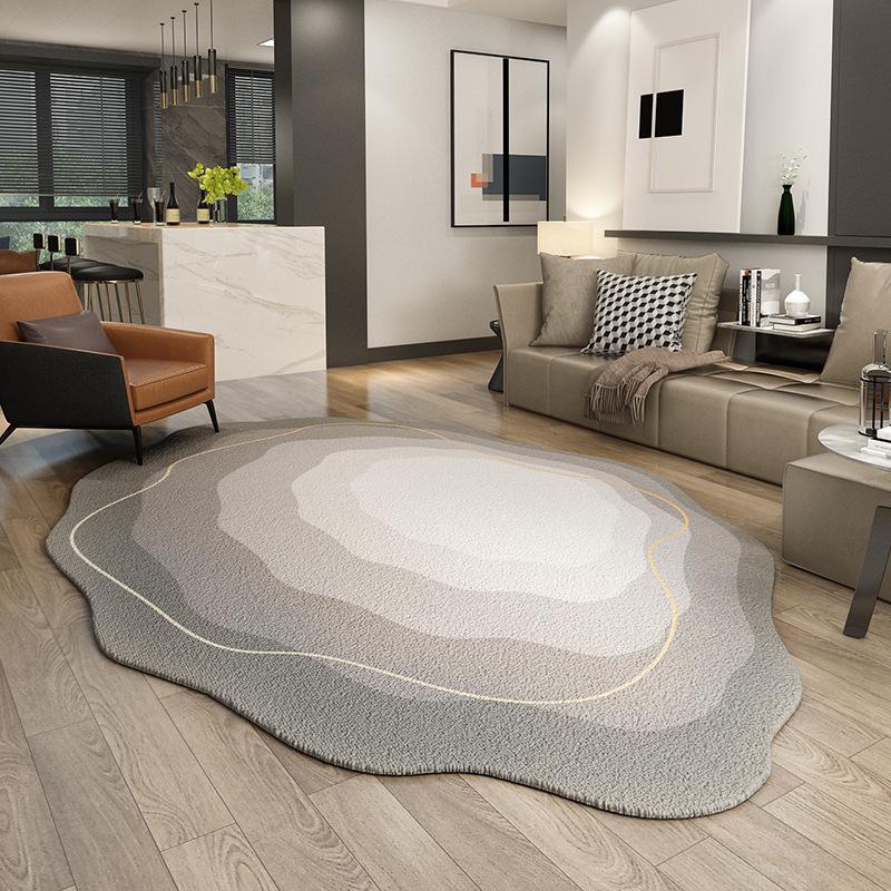 Luxury Irregular-Shaped Carpet for Living Room - Elegant Grey, Stain-Resistant Tea Table Mat, Modern Minimalist Bedroom Area Rug, Perfect for Bedside Decor