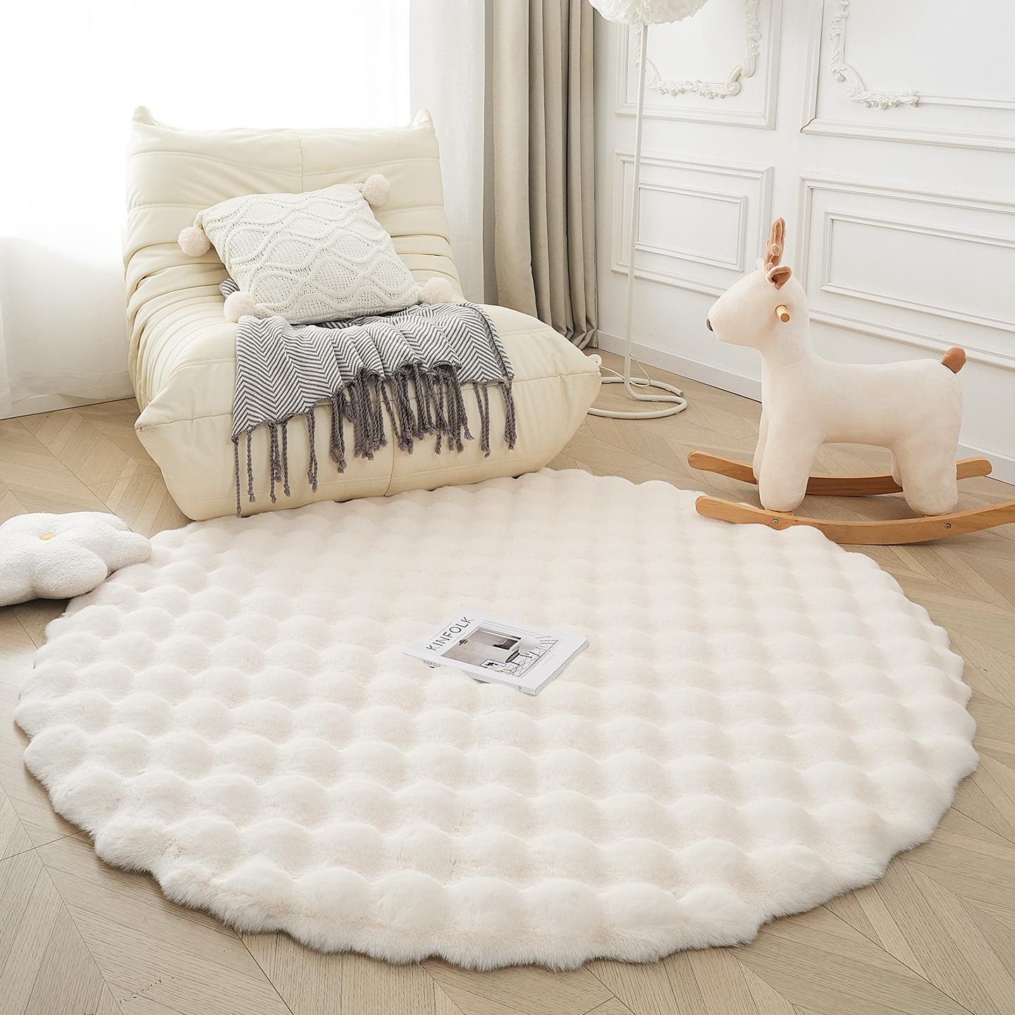 Creamy Bunny Fur Round Carpet – Plush Chair Cushion, Sofa Mat, Living Room Area Rug, Bedside Carpet, Soft Bubble Fleece for Ultimate Comfort and Style.