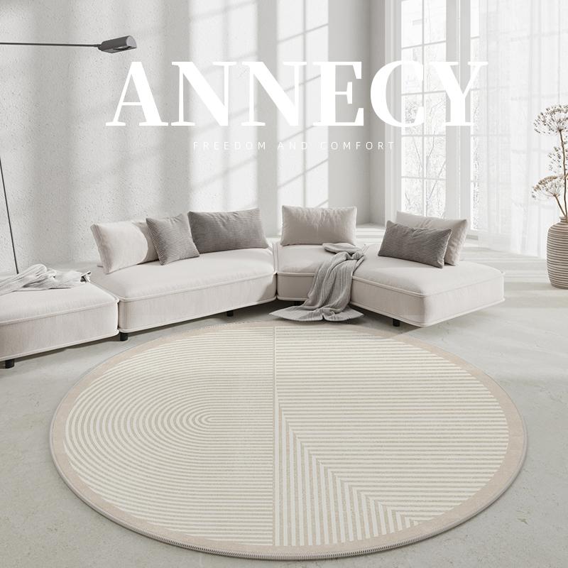 Round Wabi-Sabi Style Carpet for Living Room - Minimalist Cream Aesthetic Area Rug, Perfect for Coffee Tables and Balcony Hanging Baskets, Elegant Cushions for Vanity Chairs