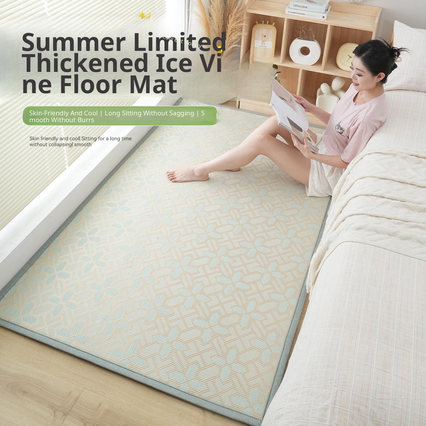Summer Cool Mat Carpet - Thickened Bedside Anti-Fall Cushion for Bedroom, Japanese Tatami Floor Mat, Perfect for Baby Crawling and Playtime