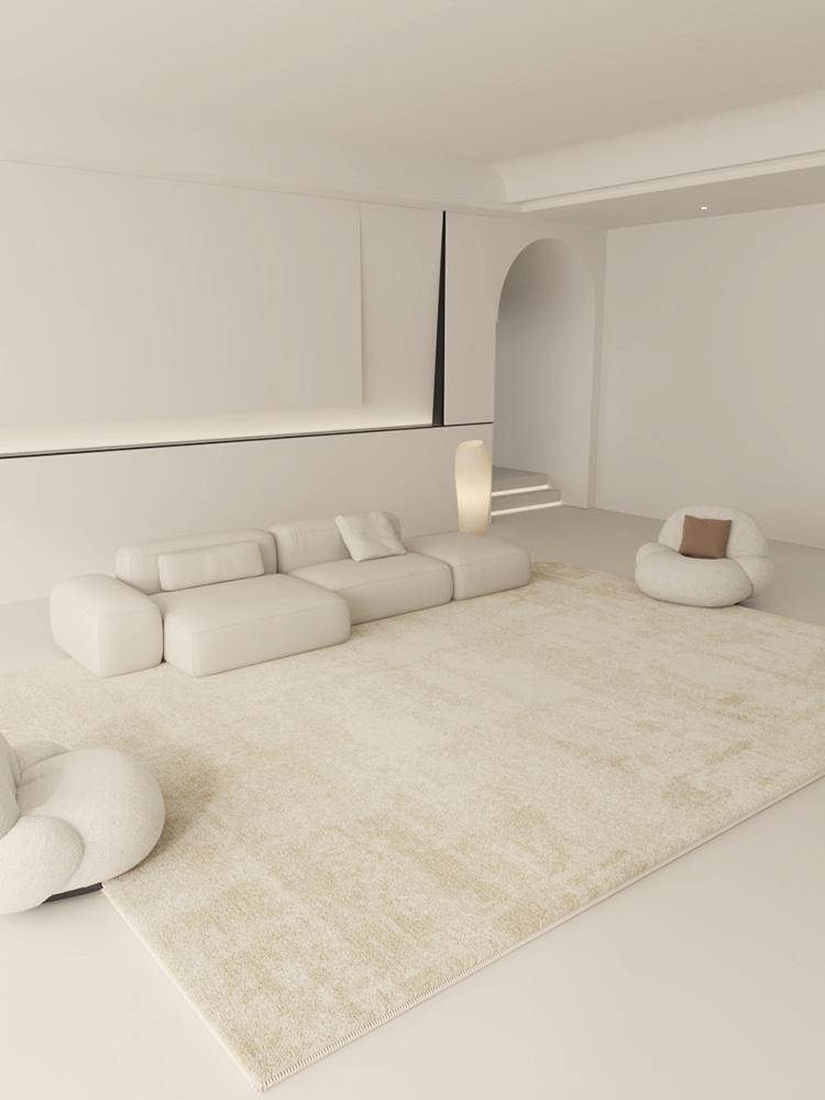 Minimalist Solid Color Wabi-Sabi Style Carpet - Creamy Beige Area Rug for Living Room, Bedroom, and Study - Elegant Floor Mat Perfect for Coffee Tables and Bedside Use