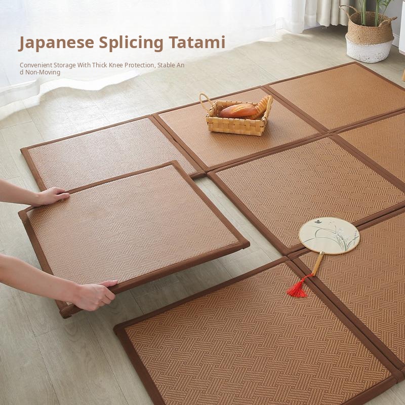 Japanese-Style Rattan Interlocking Floor Mat - Perfect for Kids' Naptime, Living Room Cooling Mat, and Lazy Tatami Lounge - Your Essential Floor Solution!