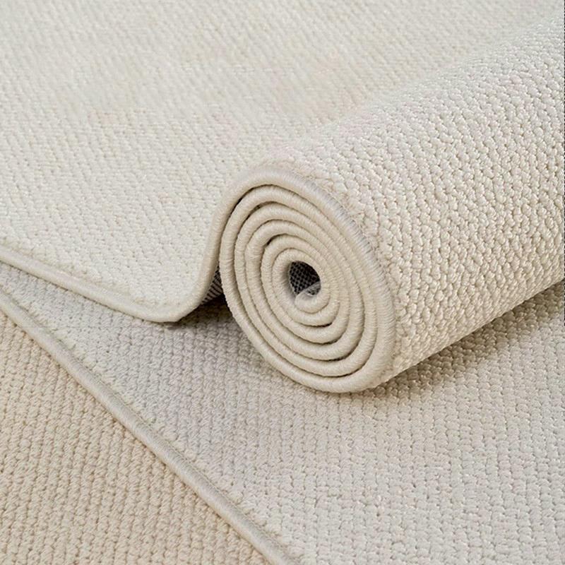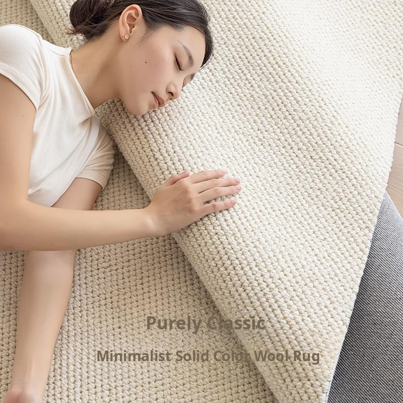 Elegant Solid Color Wool Carpet for Living Room - French Cream Style Sofa Blanket, Minimalist Luxury Bedroom Bedside Mat, Easy to Clean and Maintain