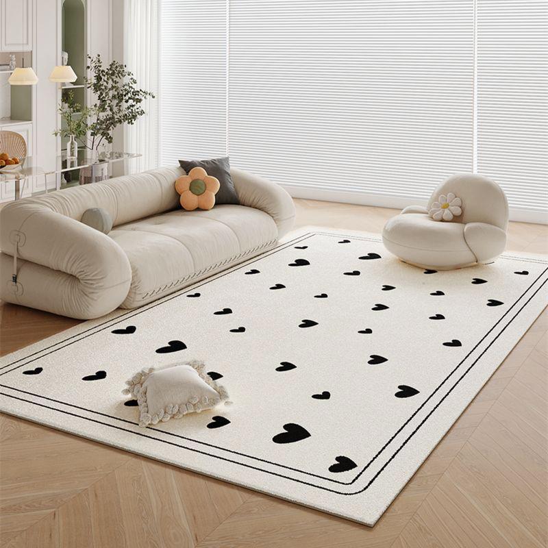 Creamy Aesthetic Area Rug - Minimalist and Fresh Living Room Carpet, Ideal for Coffee Tables, Cute Bedroom Bedside Mat, Perfect Play Mat for Kids' Rooms