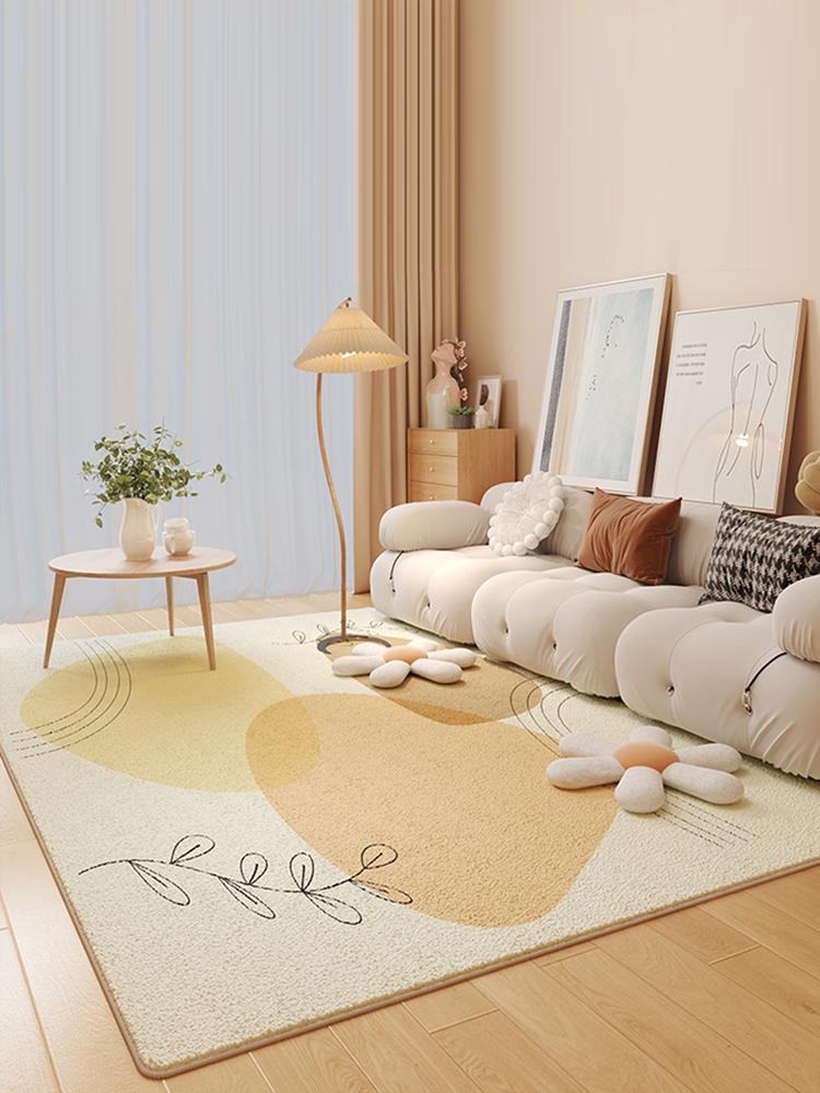Japanese Cream-Style Carpet: Luxurious Sofa Throw for Living Room, Modern Minimalist Wabi-Sabi Design, Warm Color Bedside Mat for Bedroom