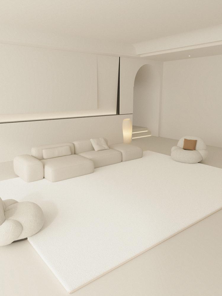 White Wabi-Sabi Style Carpet for Living Room - Cream-Colored Faux Wool Area Rug for Bedroom or Coffee Table - High-End, Low-Maintenance Design