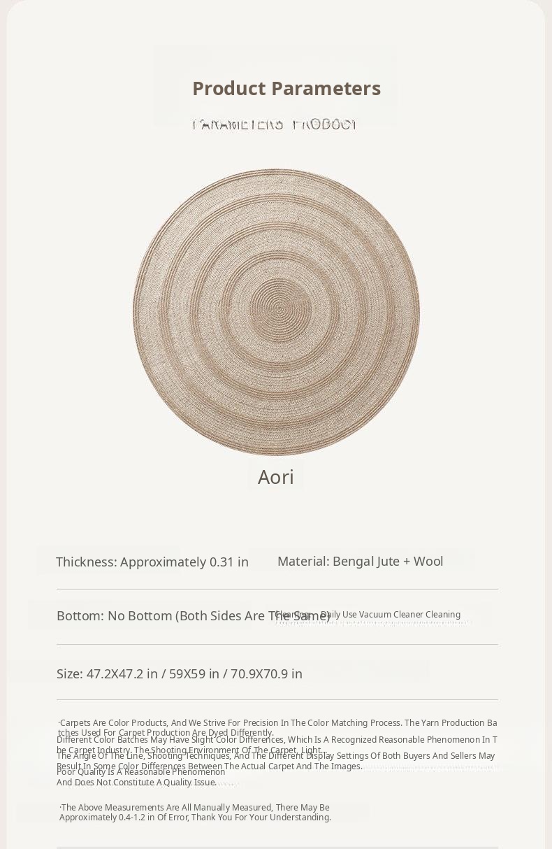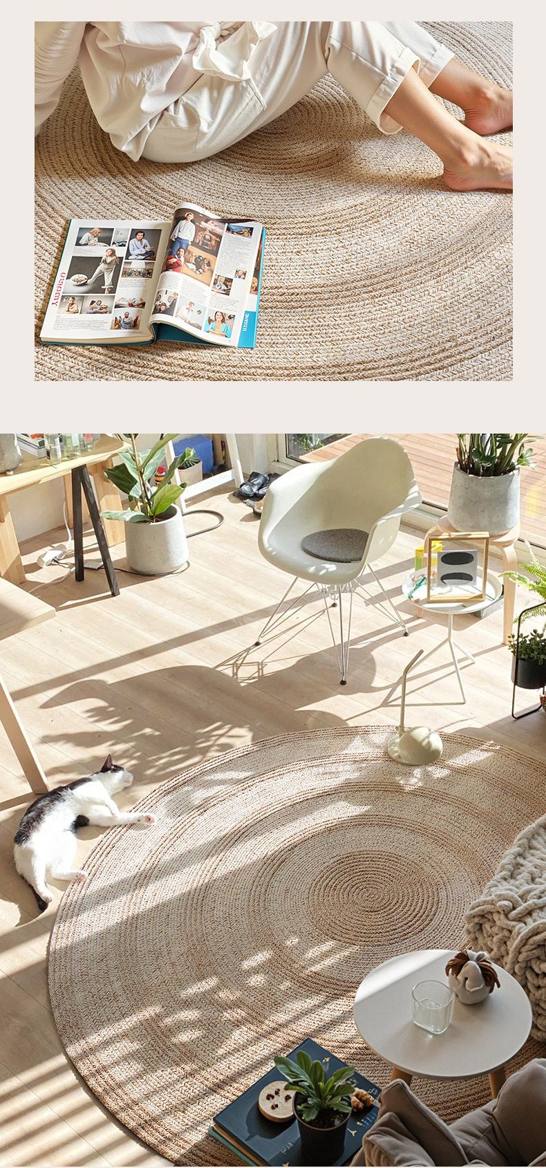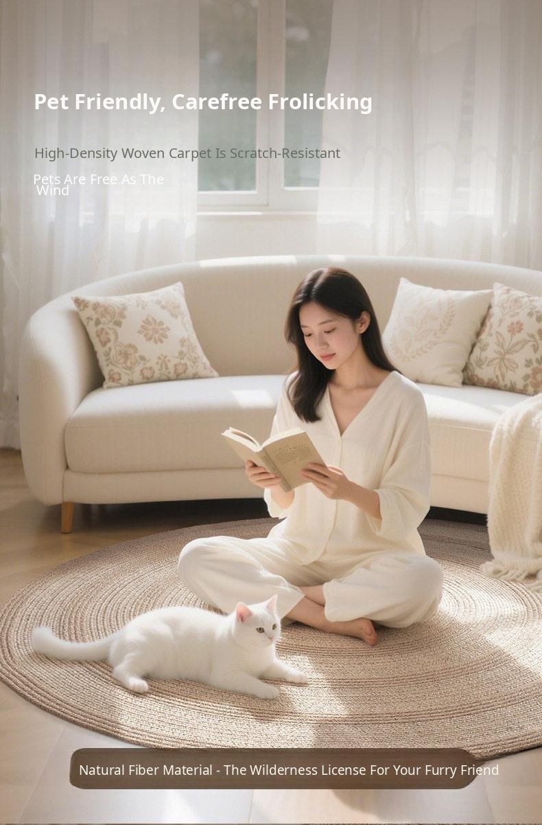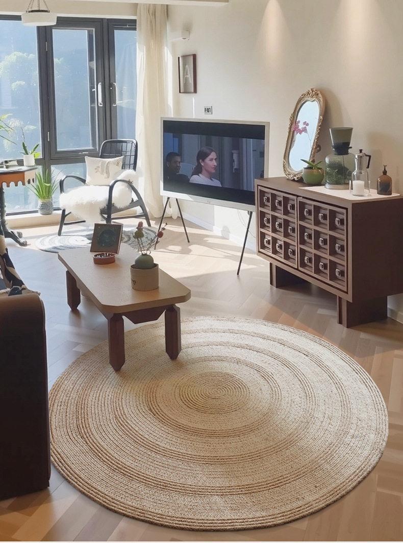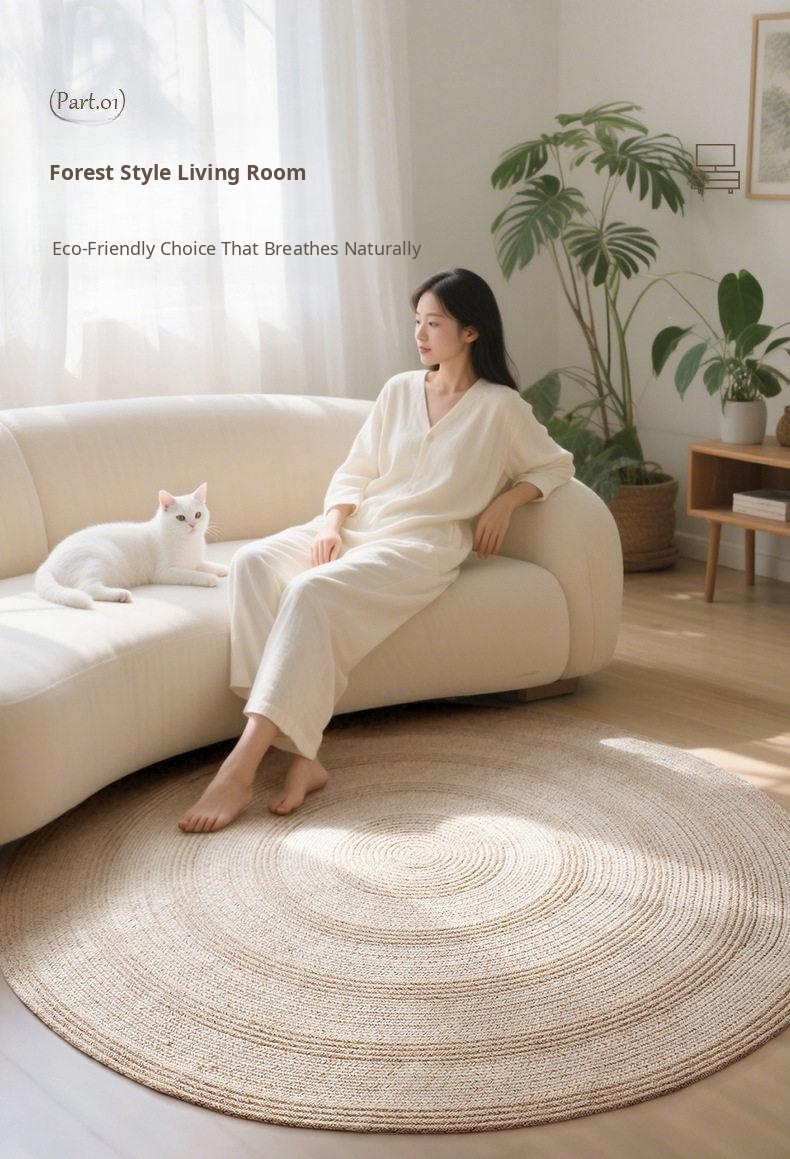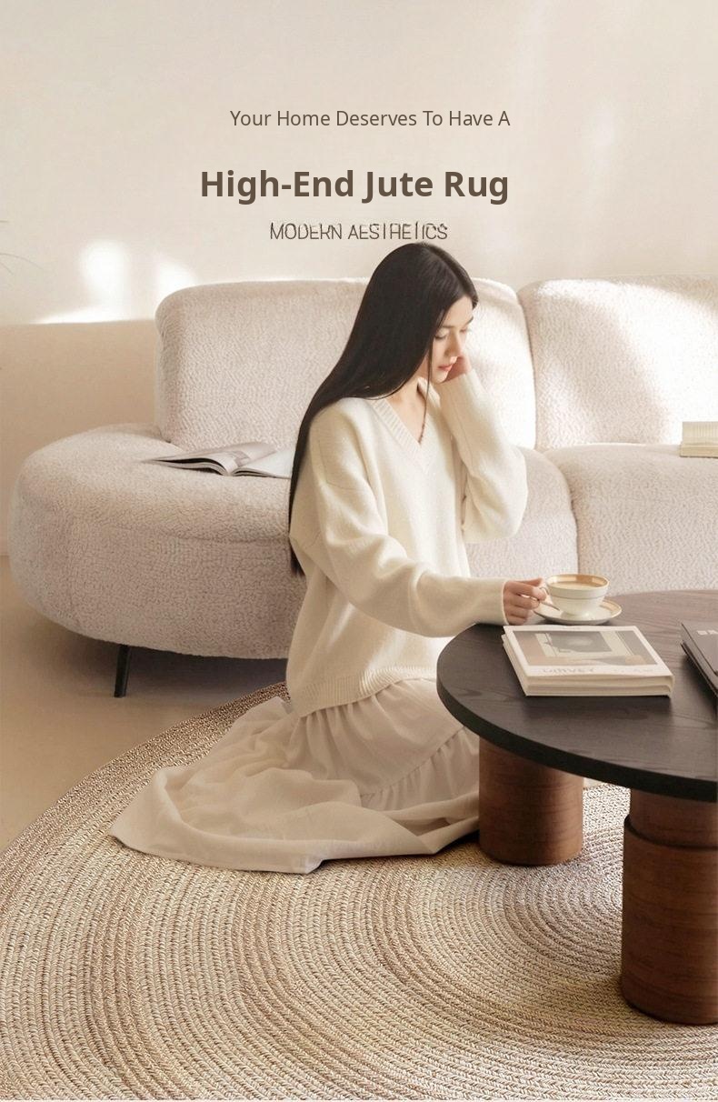 Elegant Round Jute Rug - Chic Wabi-Sabi Style Carpet for Living Room, Sofa, Bedroom, and Closet - 2026 New Design for Chairs and Floors
