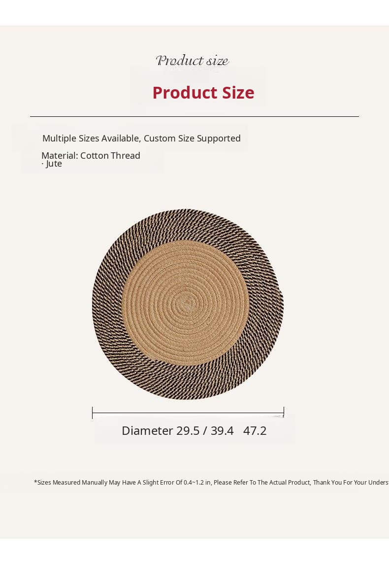 Handcrafted Jute Round Rug - Ideal for Cozy Homestays, Tea Rooms, and Balcony Swing Chairs - Perfect for Japanese-Style Bedrooms and Bedside Comfort