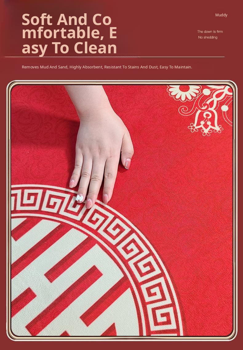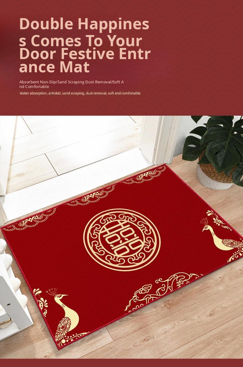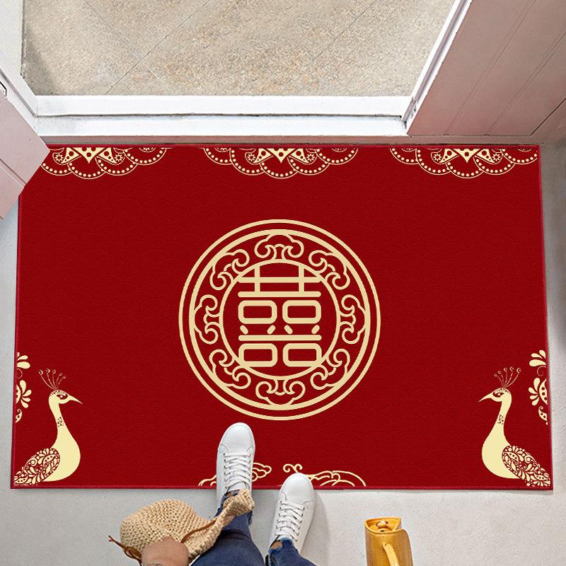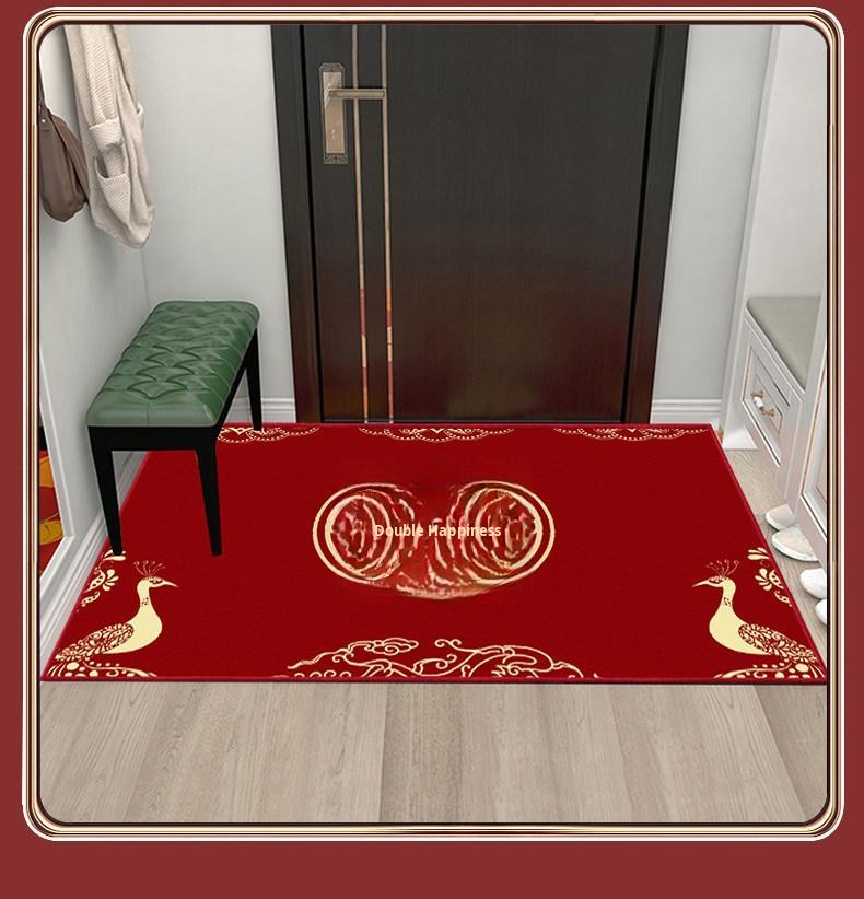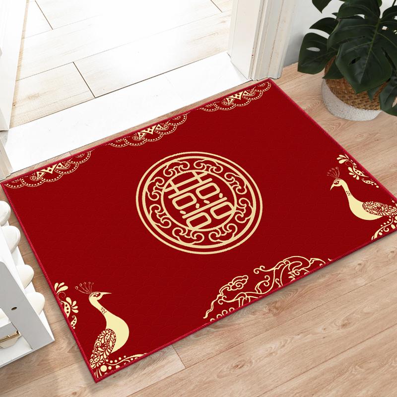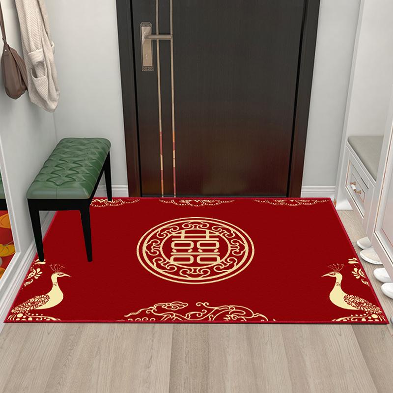 Joyful Wedding Carpet - Red Chinese Character Door Mat for Home Entrance, Perfect for Newlyweds’ Bedroom, Festive Welcome Mat for Celebrating Love and Happiness