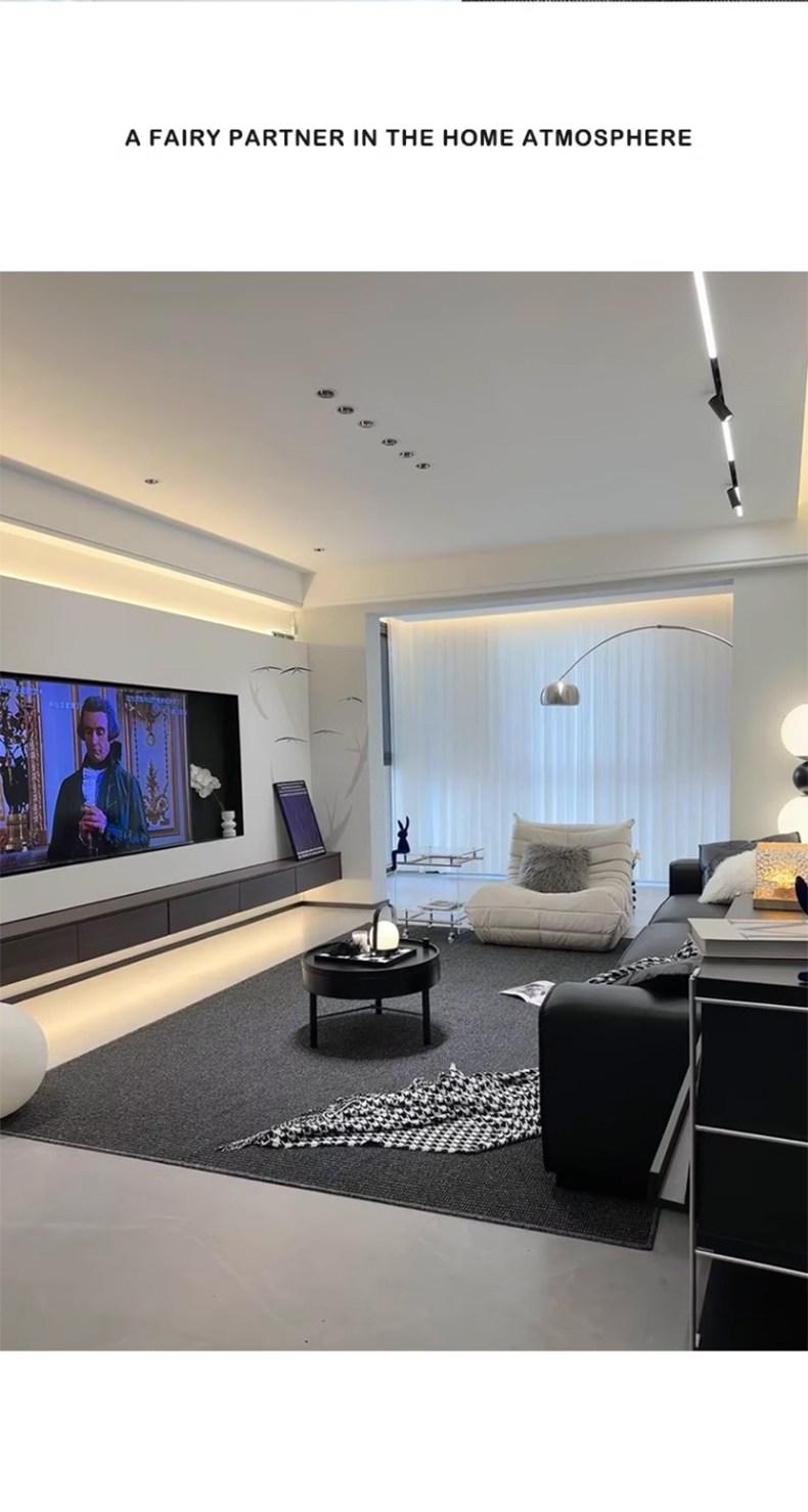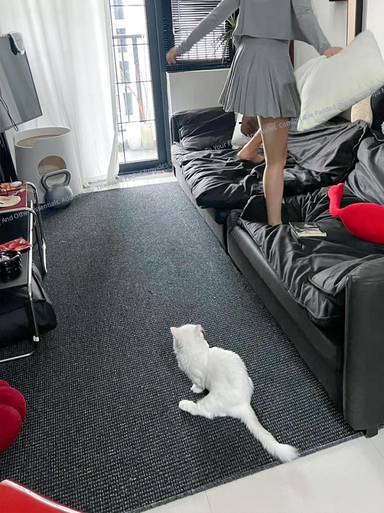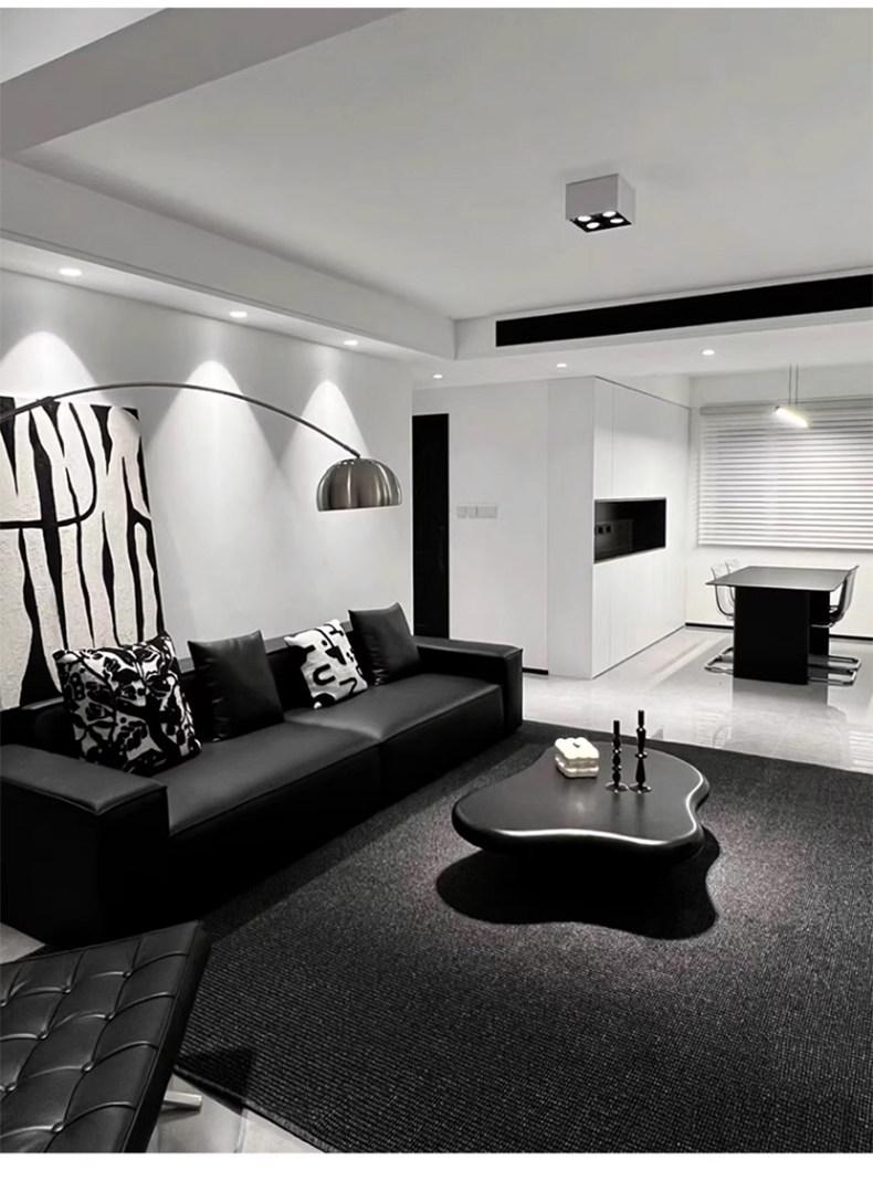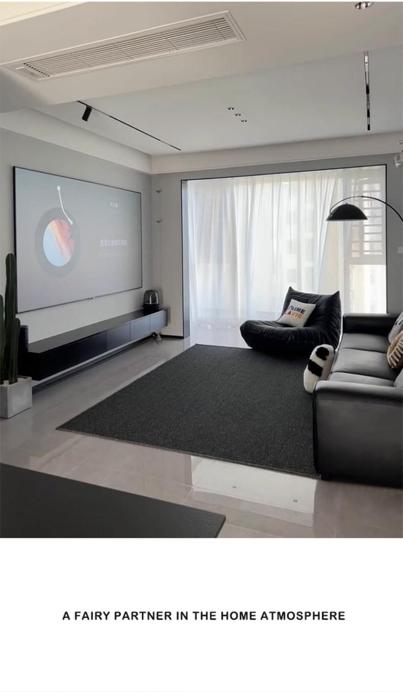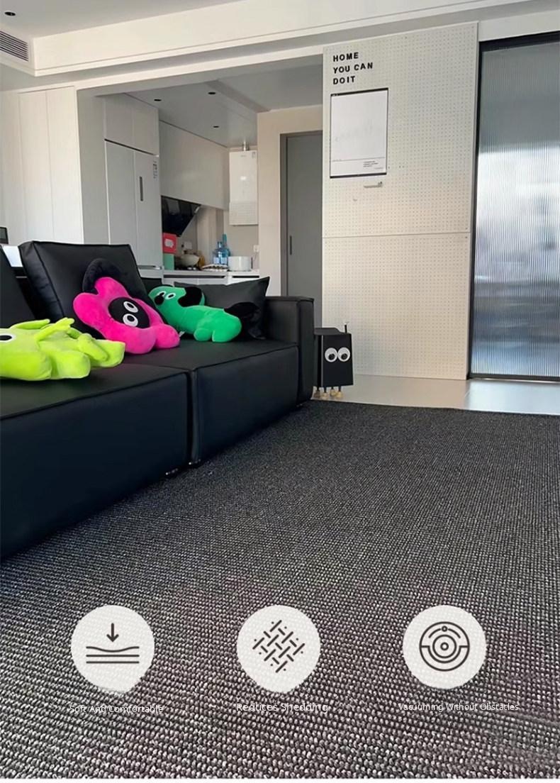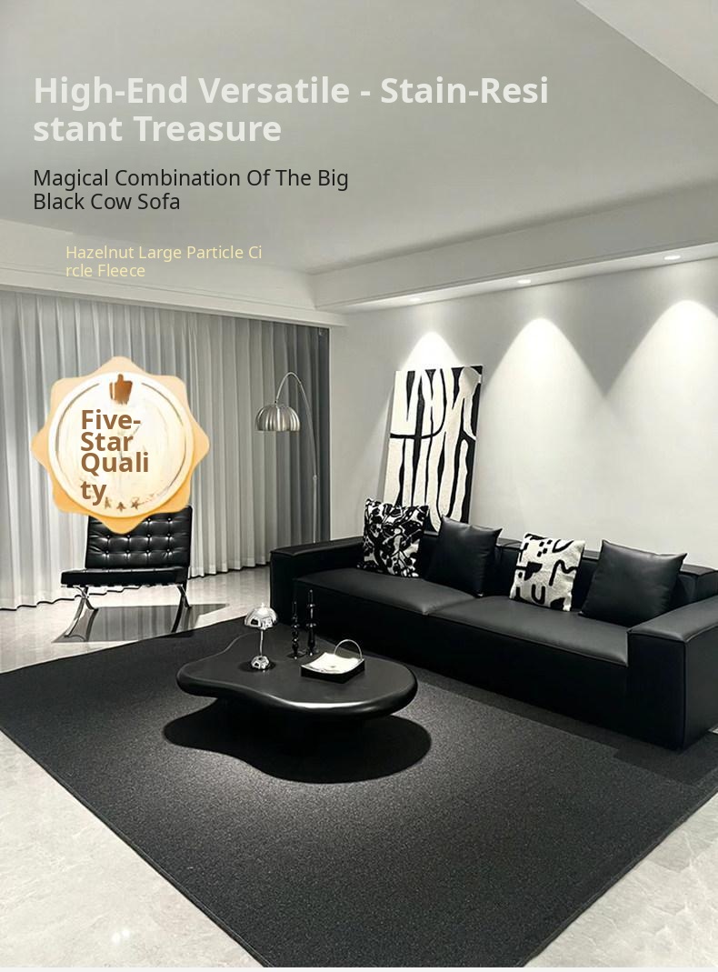 Luxurious Black Area Rug for Living Room - Italian Minimalist Coffee Table Mat, Stylish Bedroom Bedside Carpet, Stain-Resistant Dark Coffee Table Rug