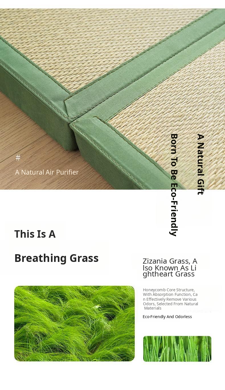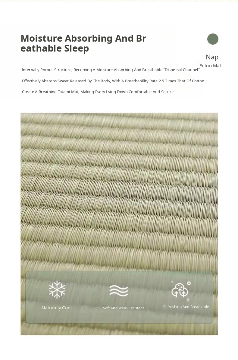 Natural Rush Grass Tatami Mat - Japanese Style Cooling Sleeping Mat for Office Naps, Thickened and Foldable, Perfect for Floor Use
