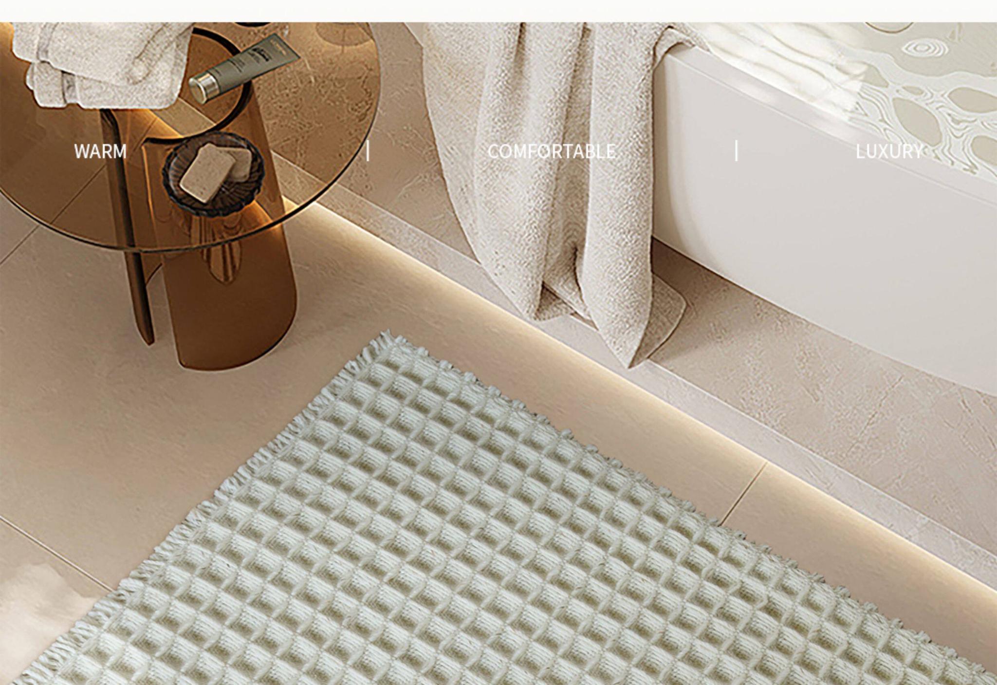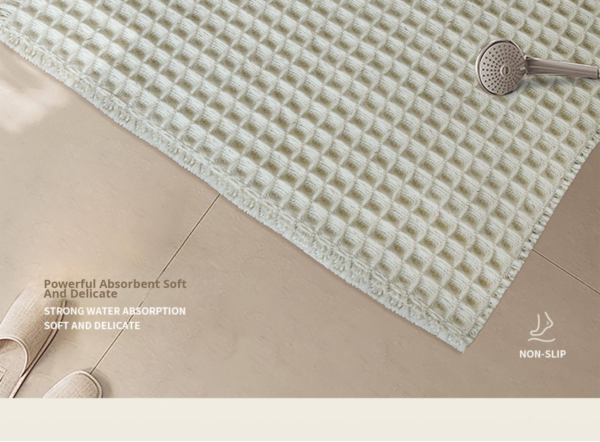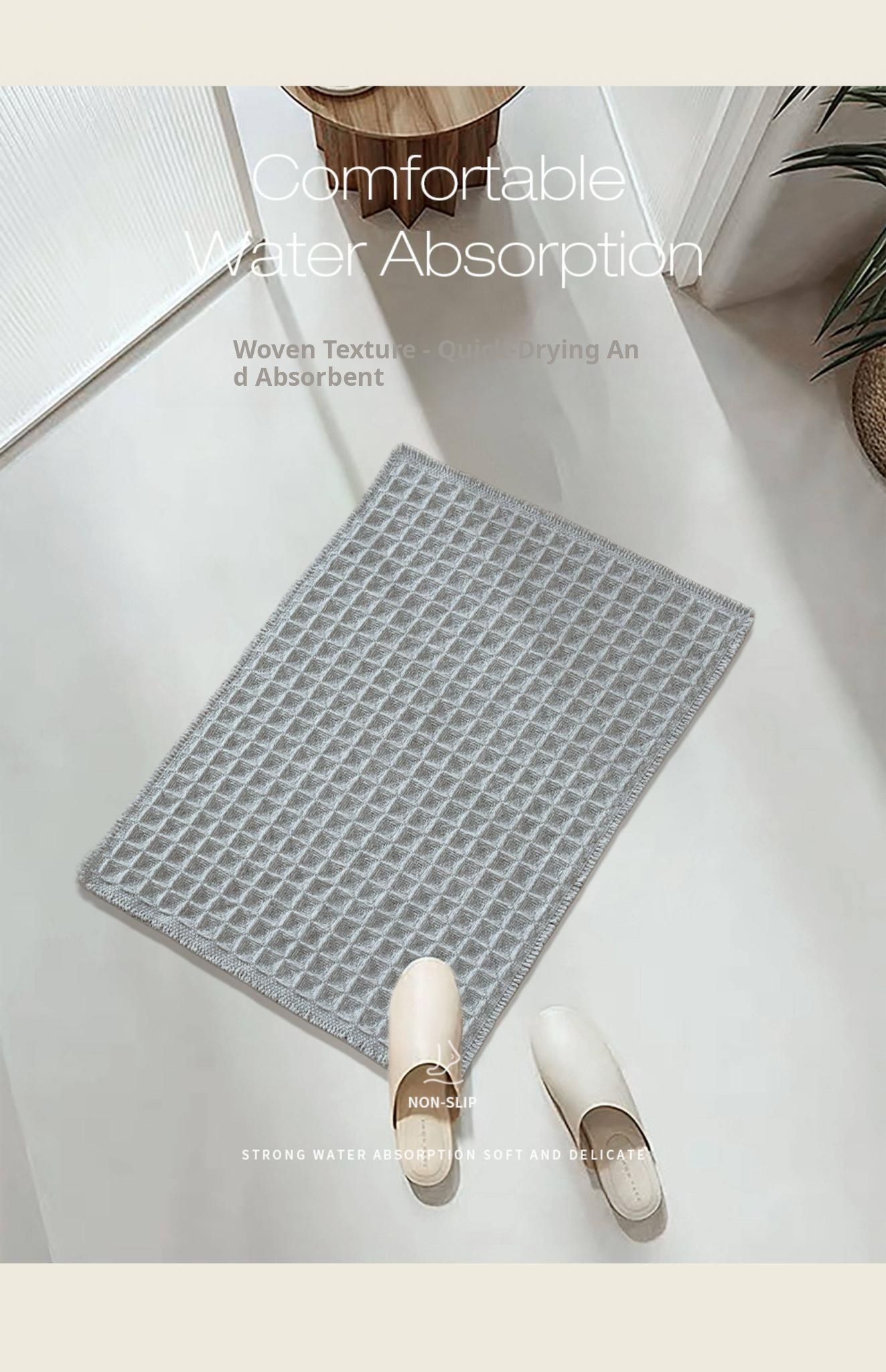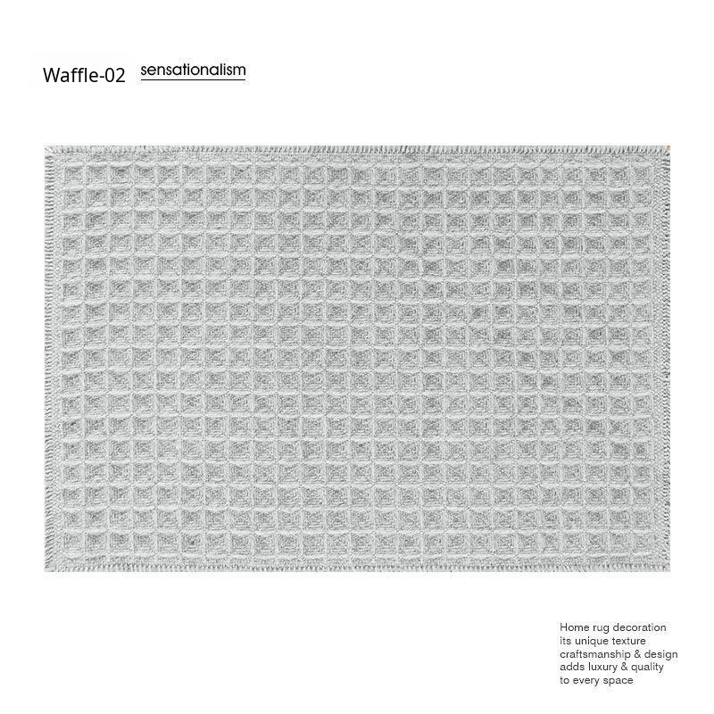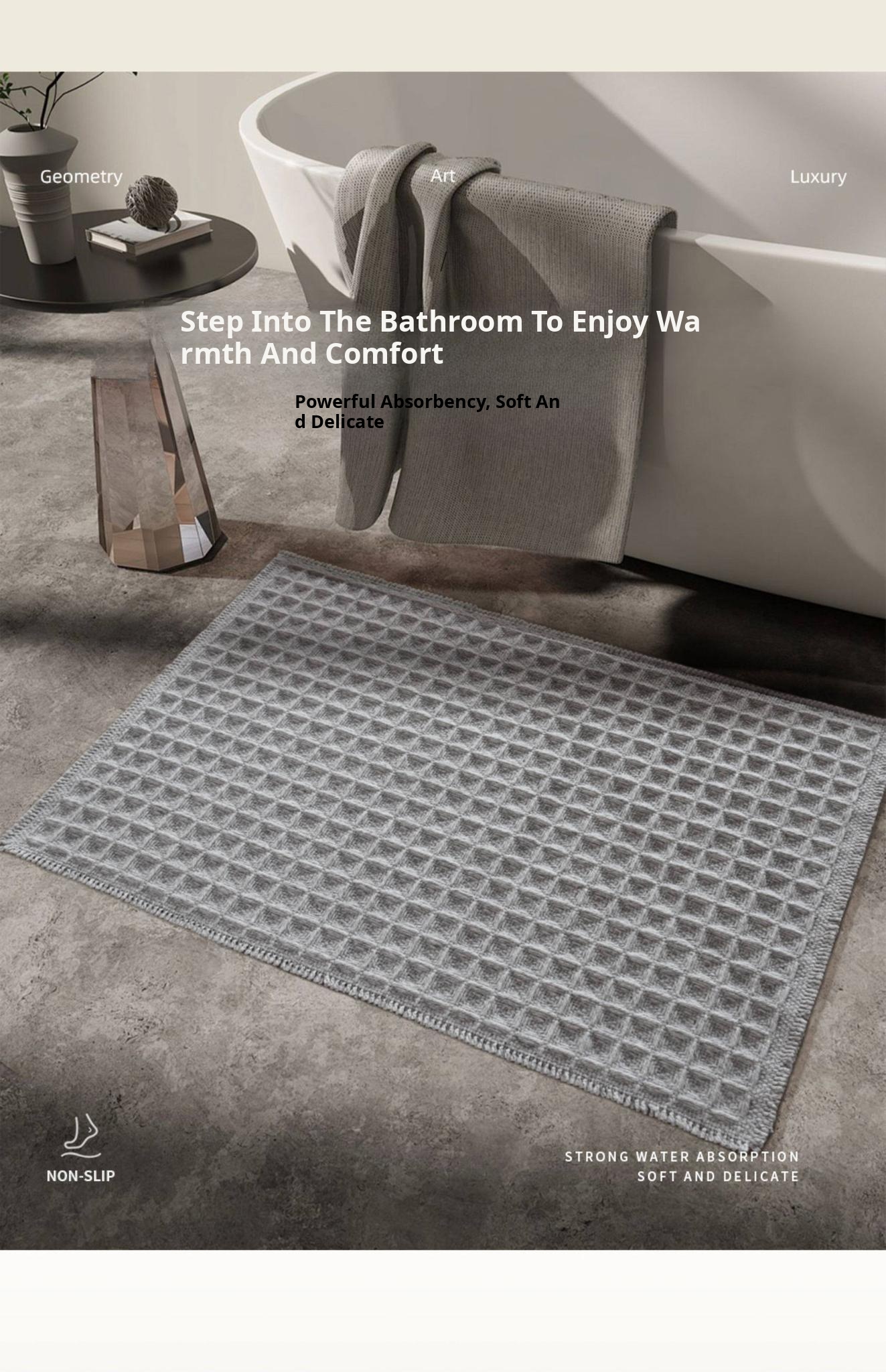 Soft and Absorbent Waffle Weave White and Gray Wool Blend Door Mat - Machine Washable, Foldable, Ideal for Bedroom and Bathroom Use