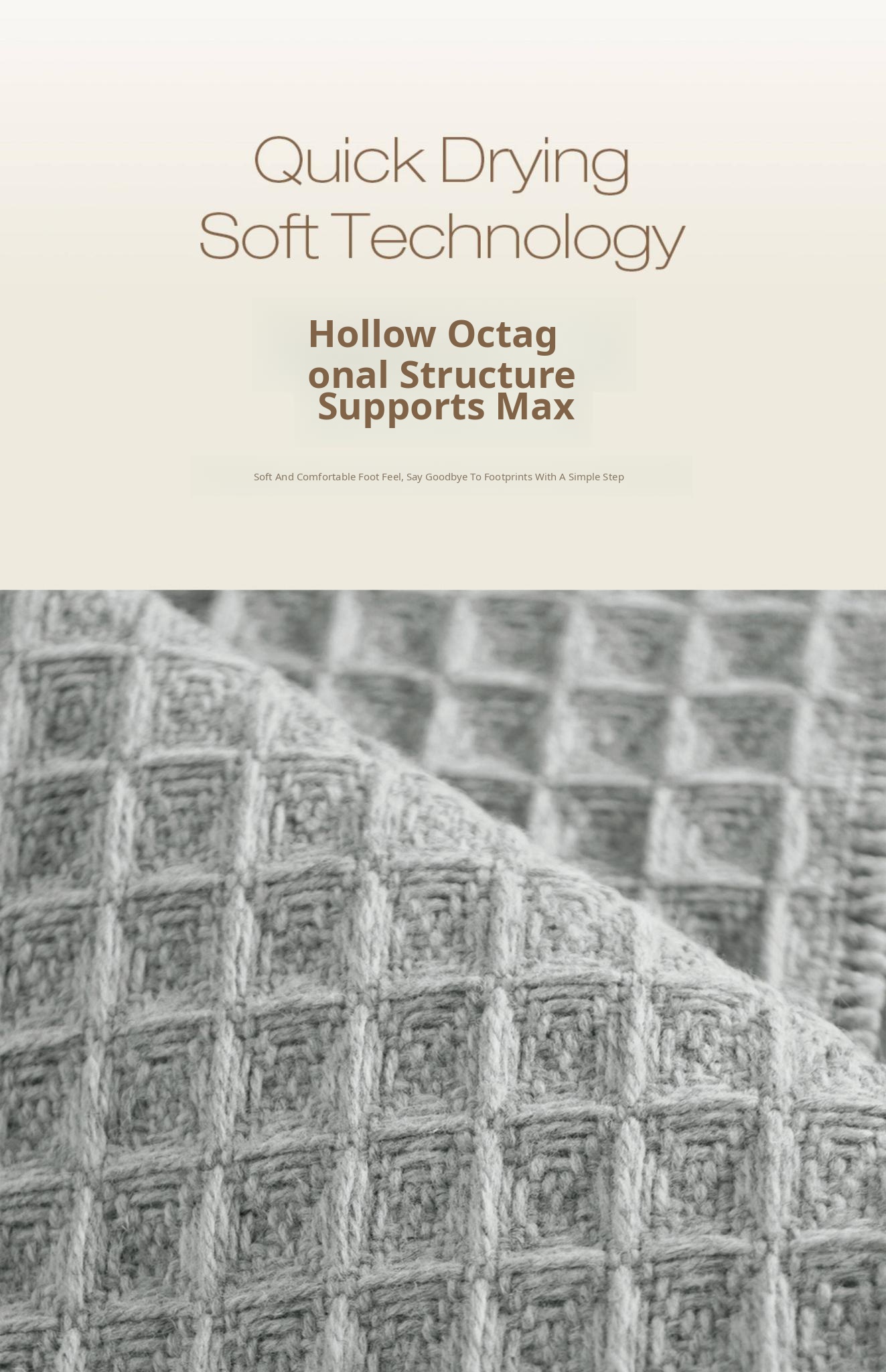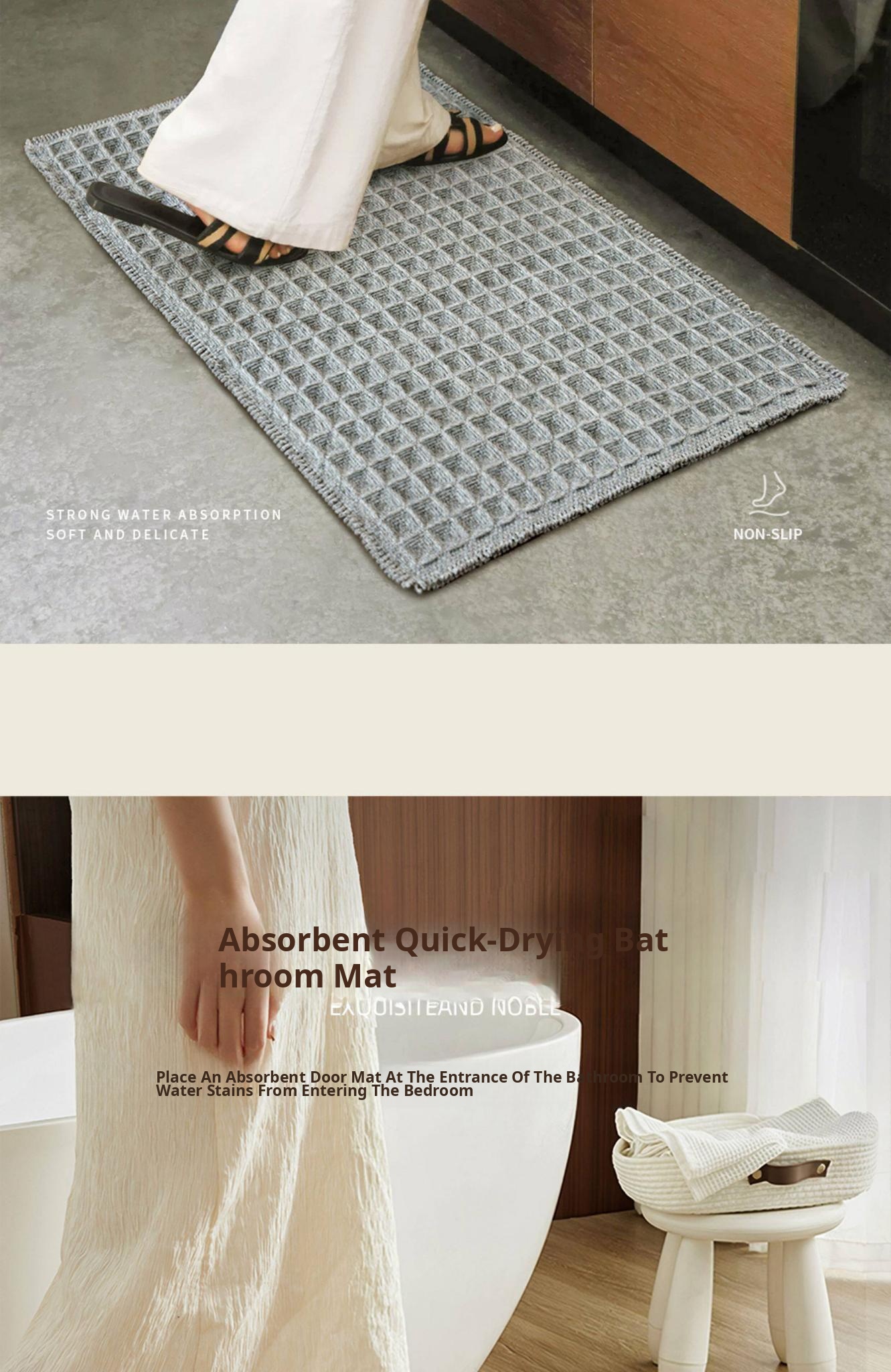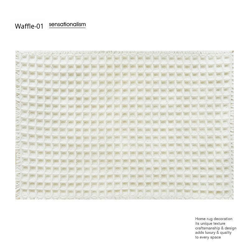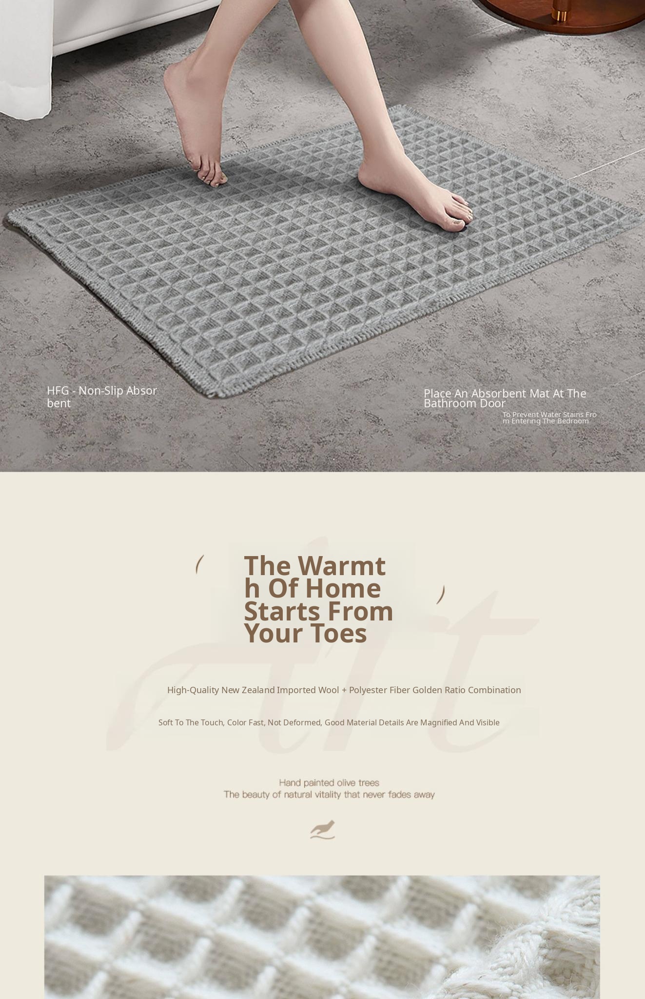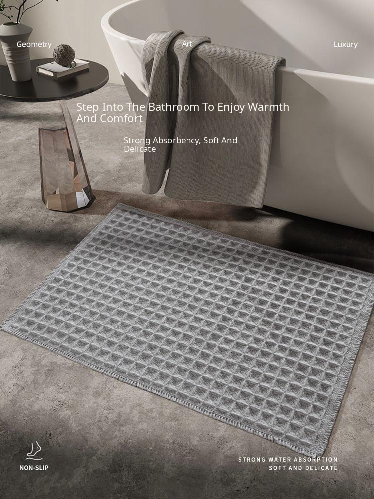 Soft and Absorbent Waffle Weave White and Gray Wool Blend Door Mat - Machine Washable, Foldable, Ideal for Bedroom and Bathroom Use