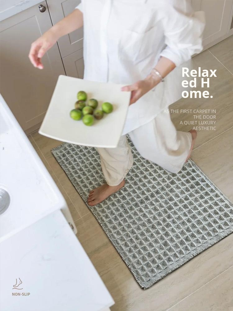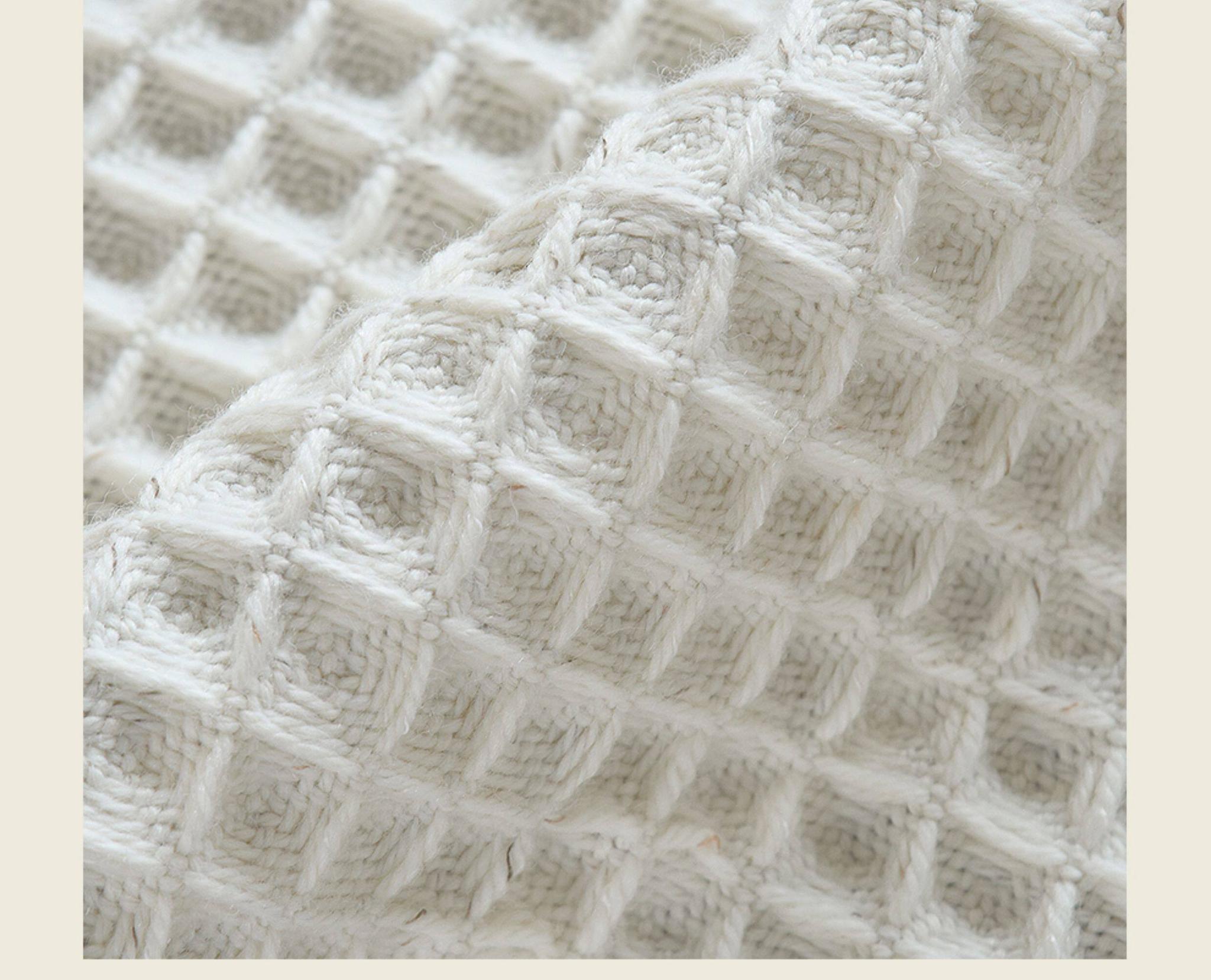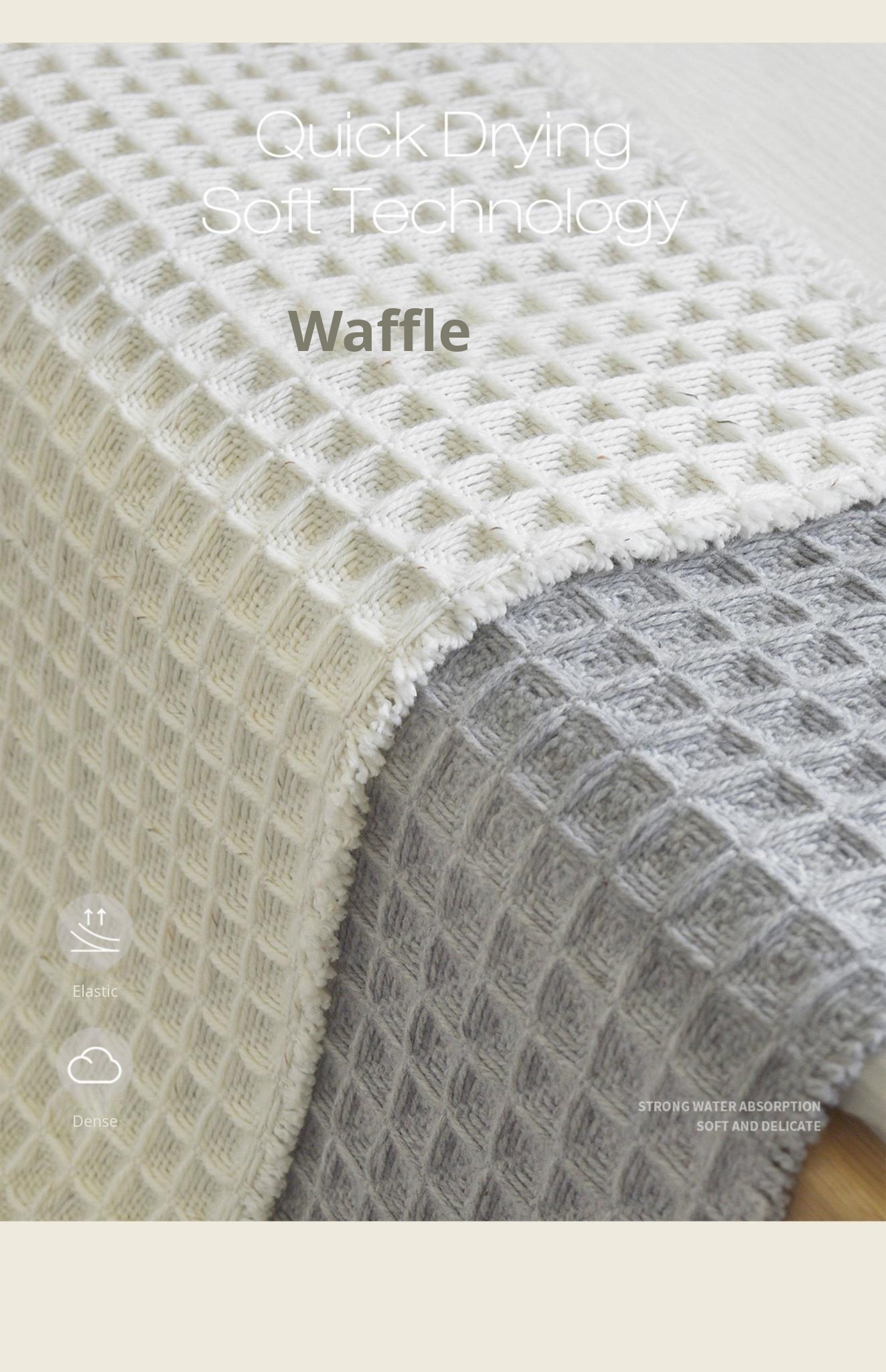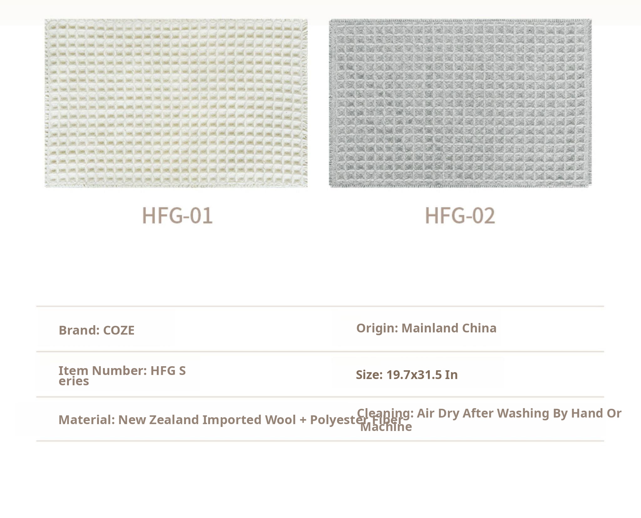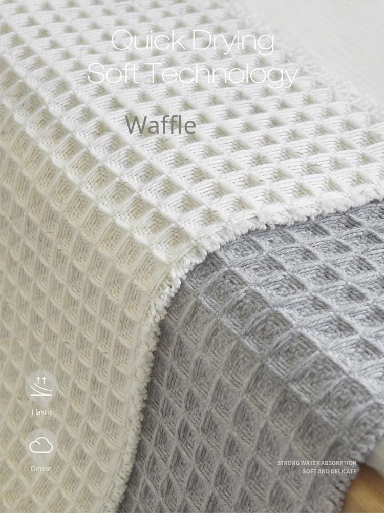 Soft and Absorbent Waffle Weave White and Gray Wool Blend Door Mat - Machine Washable, Foldable, Ideal for Bedroom and Bathroom Use