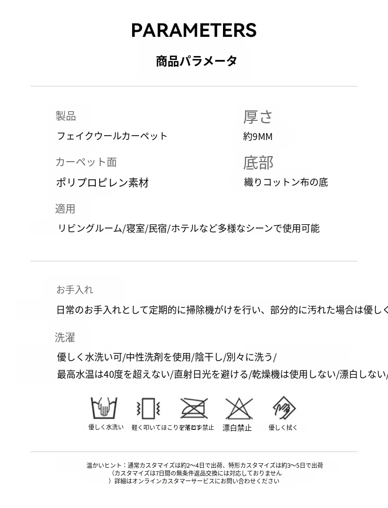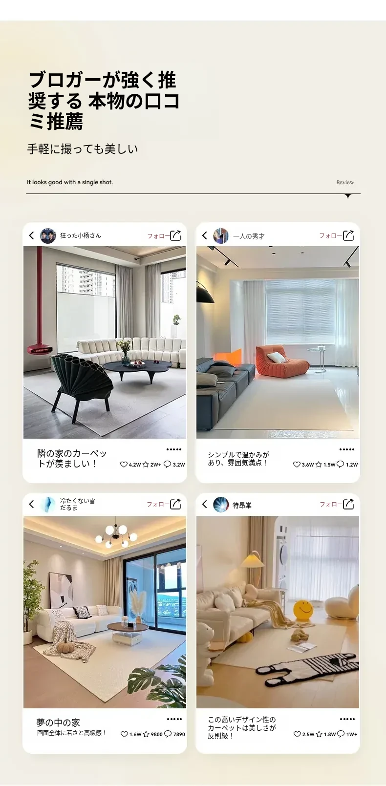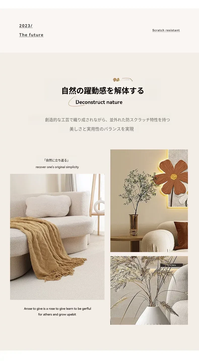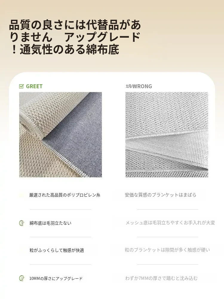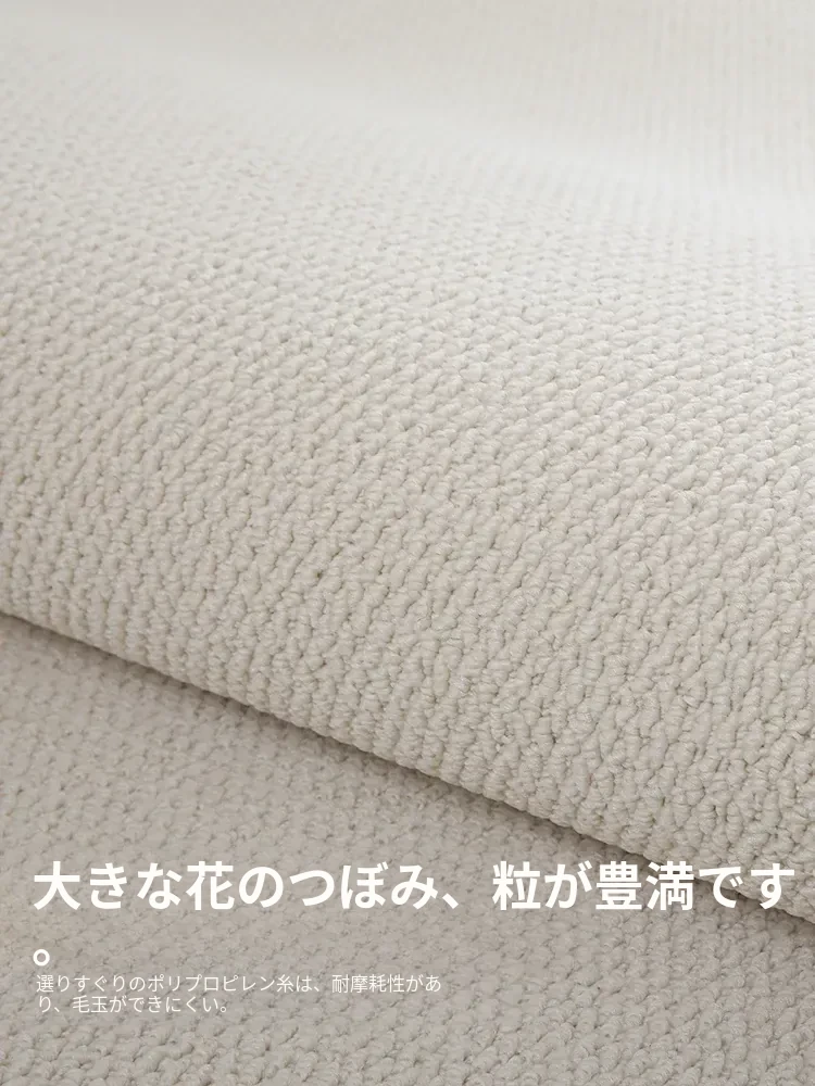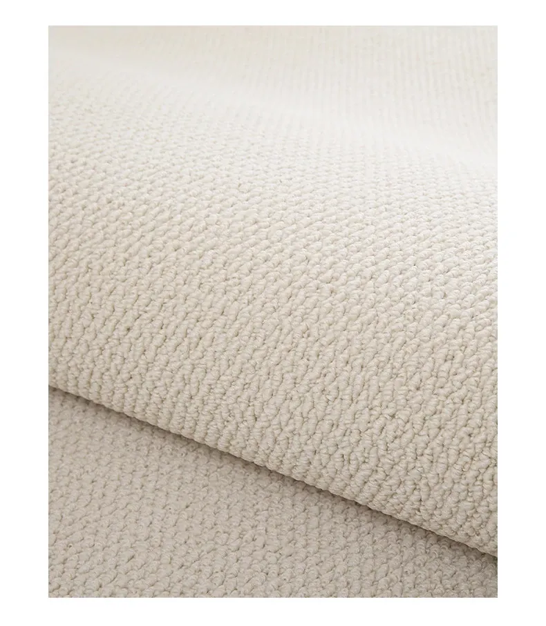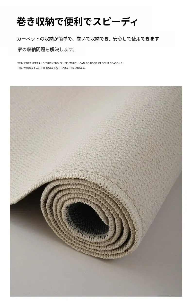 フランス風クリームタッチのラグ – 高級感あふれるホワイトのリビング用カーペット。シンプルで上品な和風ベッドサイドマット。茶色のテーブルにぴったりな侘寂スタイル。