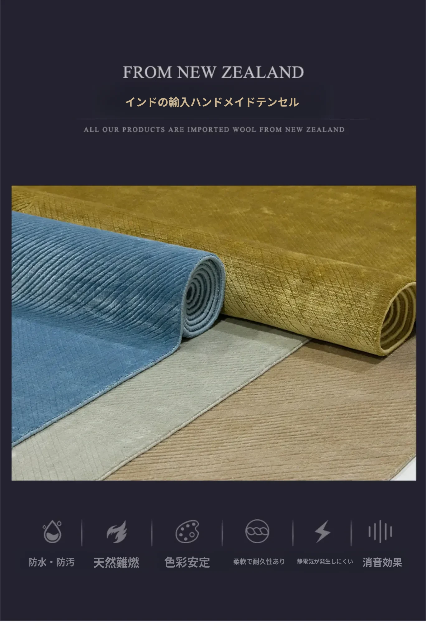 ヒロサインド輸入 無接着剤 テンセルラグ カラー無地 高級天然エコ 手作り ヴィラ向け リビングルームに最適