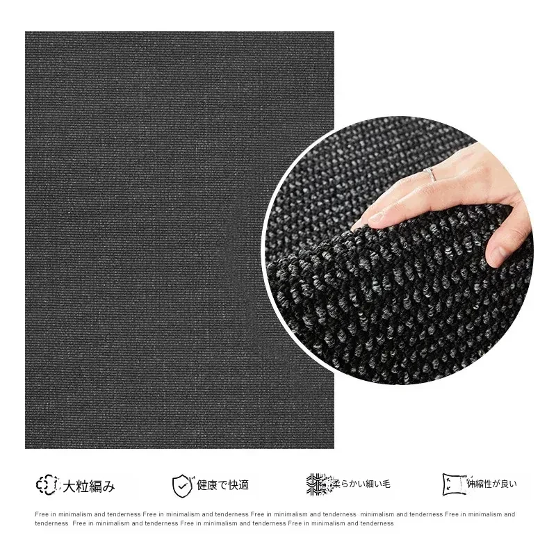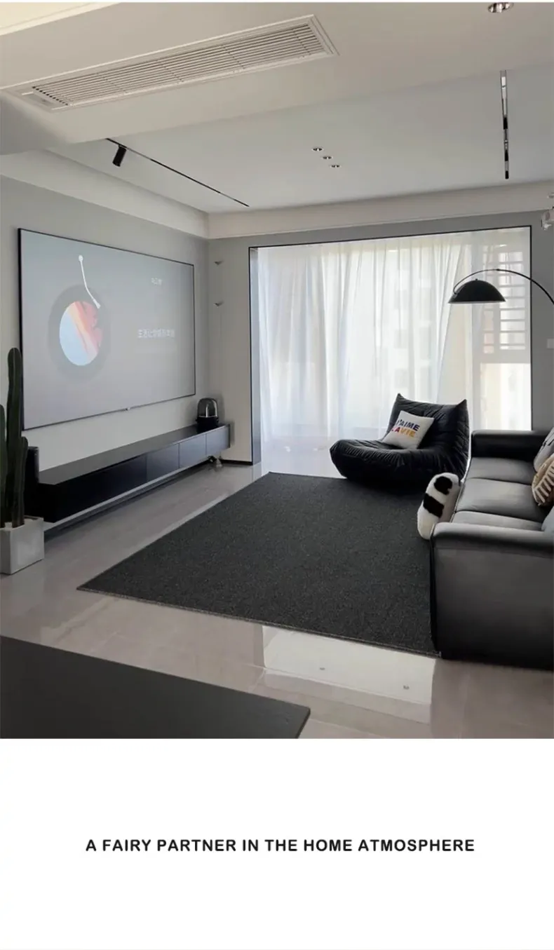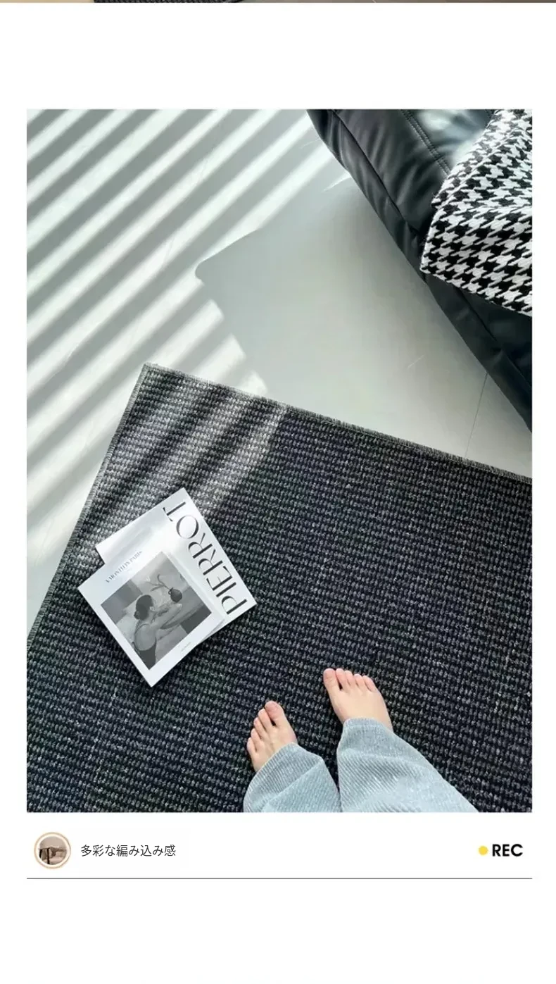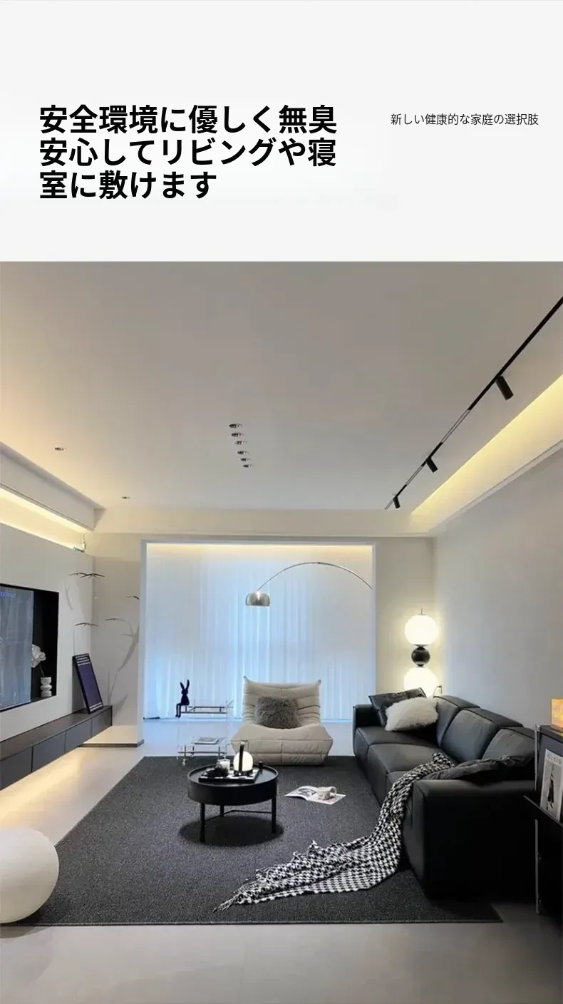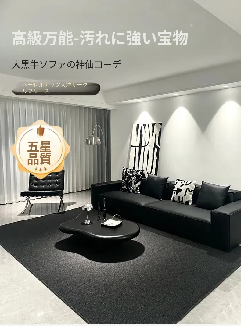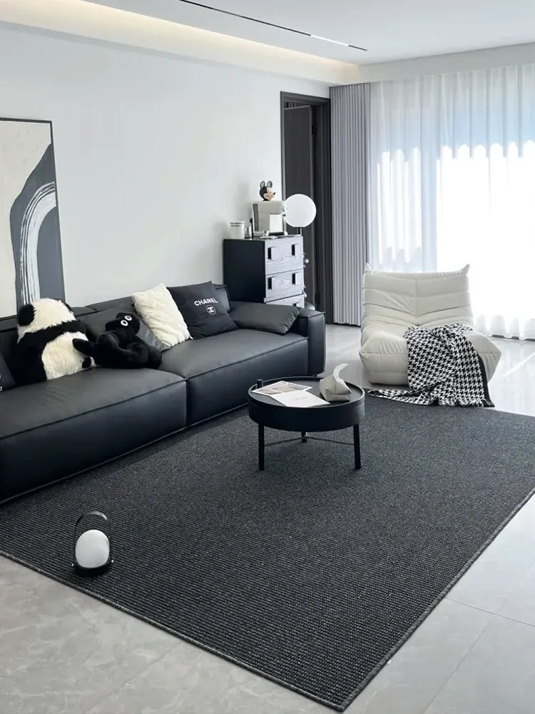 高級感あふれるブラックカーペット - イタリアンミニマリズムのリビングルーム用、シンプルなベッドサイドマット。汚れに強く、深い色合いで洗練された空間を演出します!