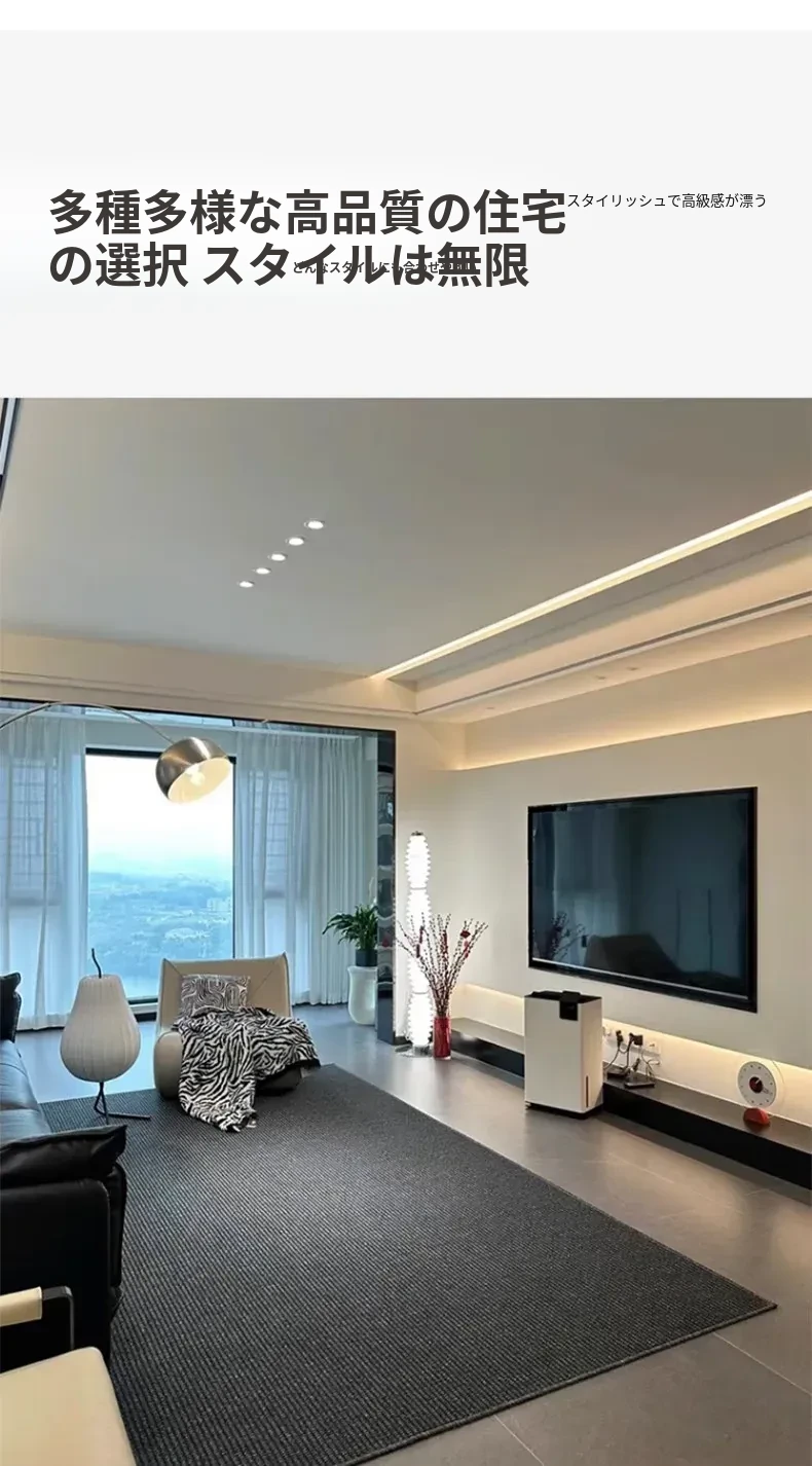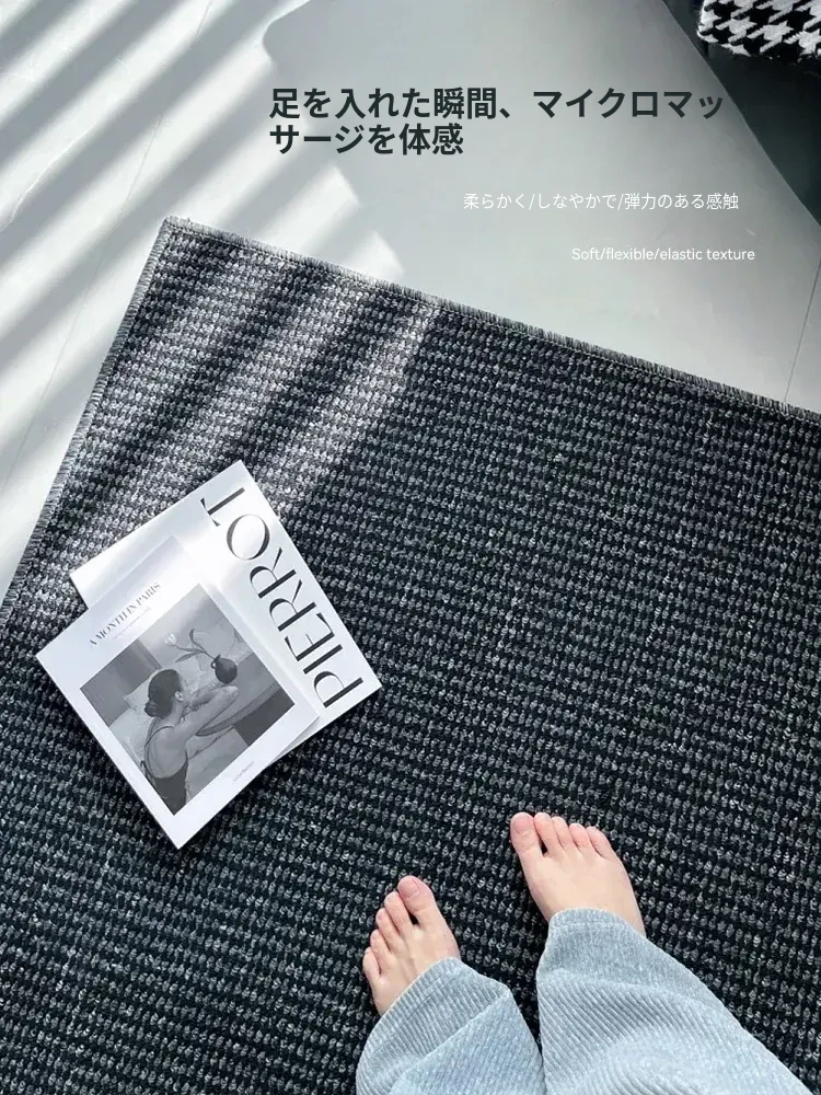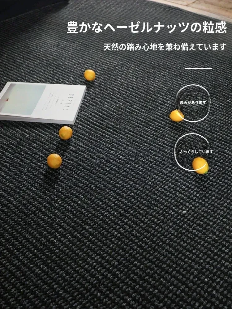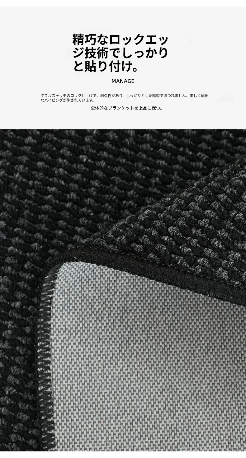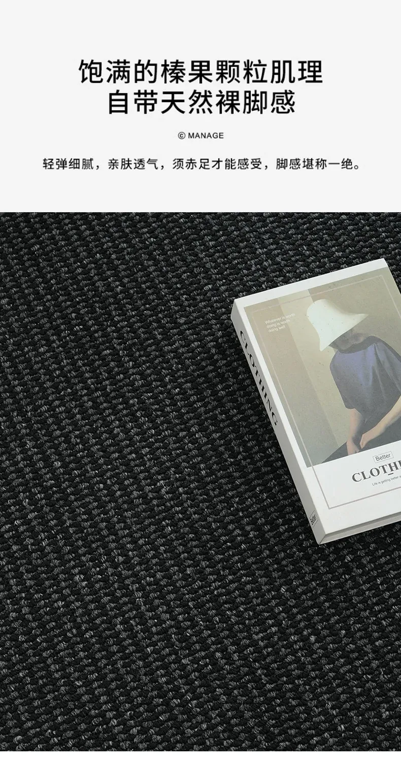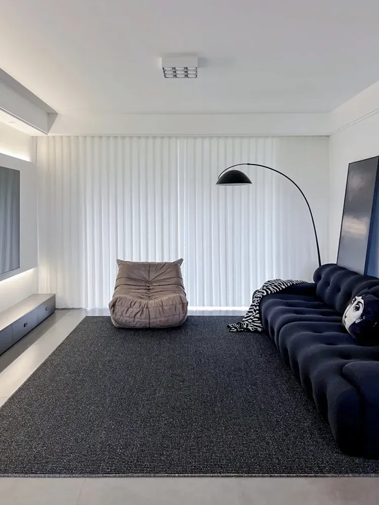 高級感あふれるブラックカーペット - イタリアンミニマリズムのリビングルーム用、シンプルなベッドサイドマット。汚れに強く、深い色合いで洗練された空間を演出します!