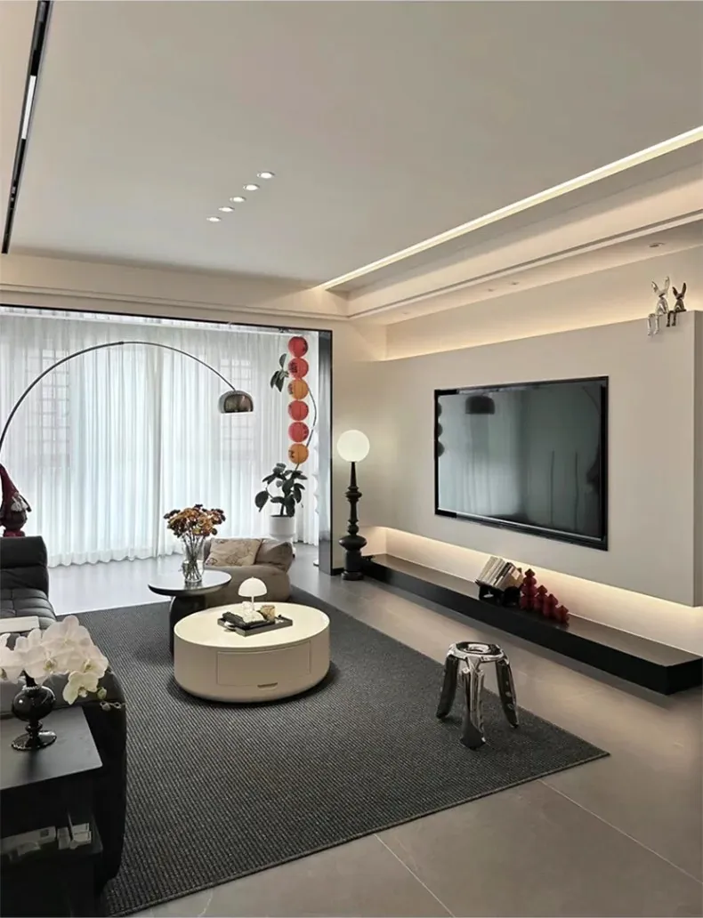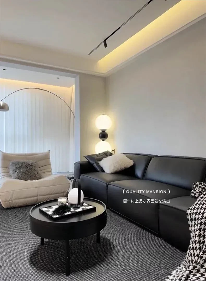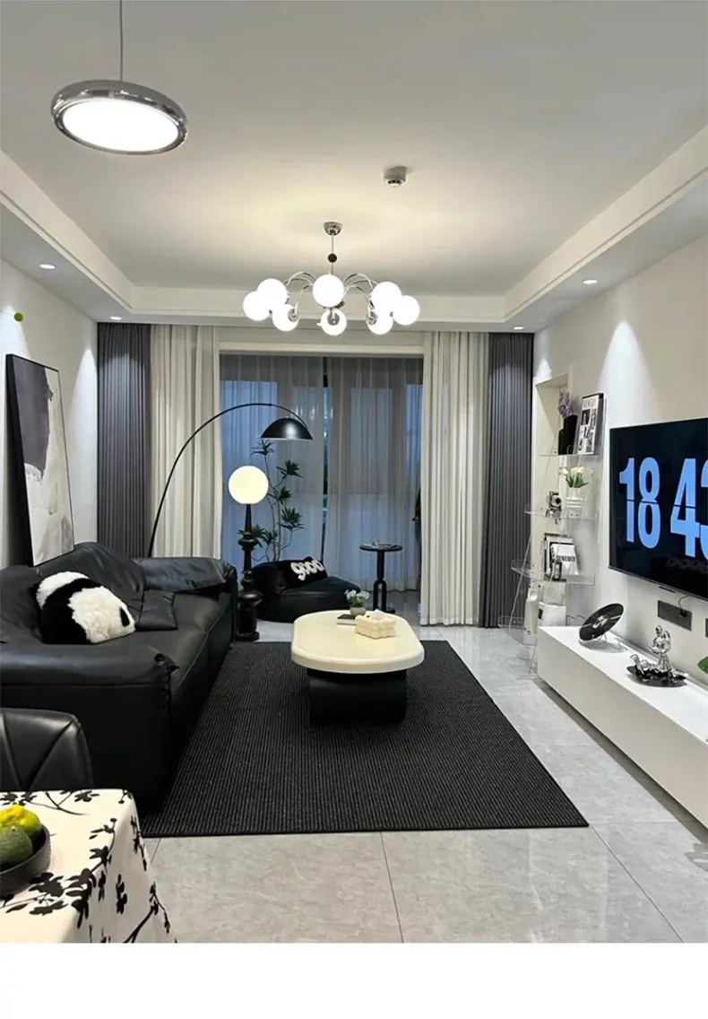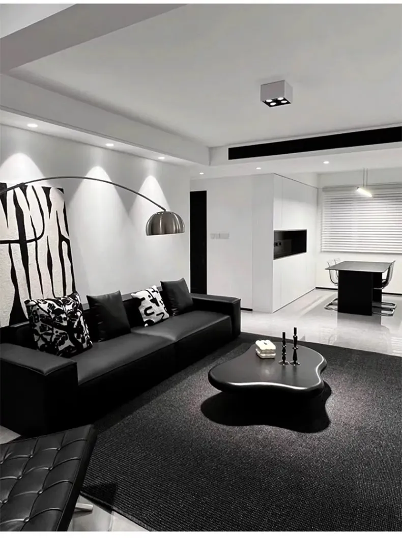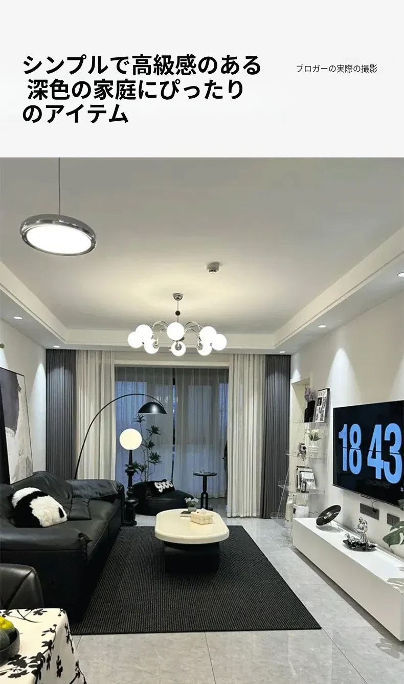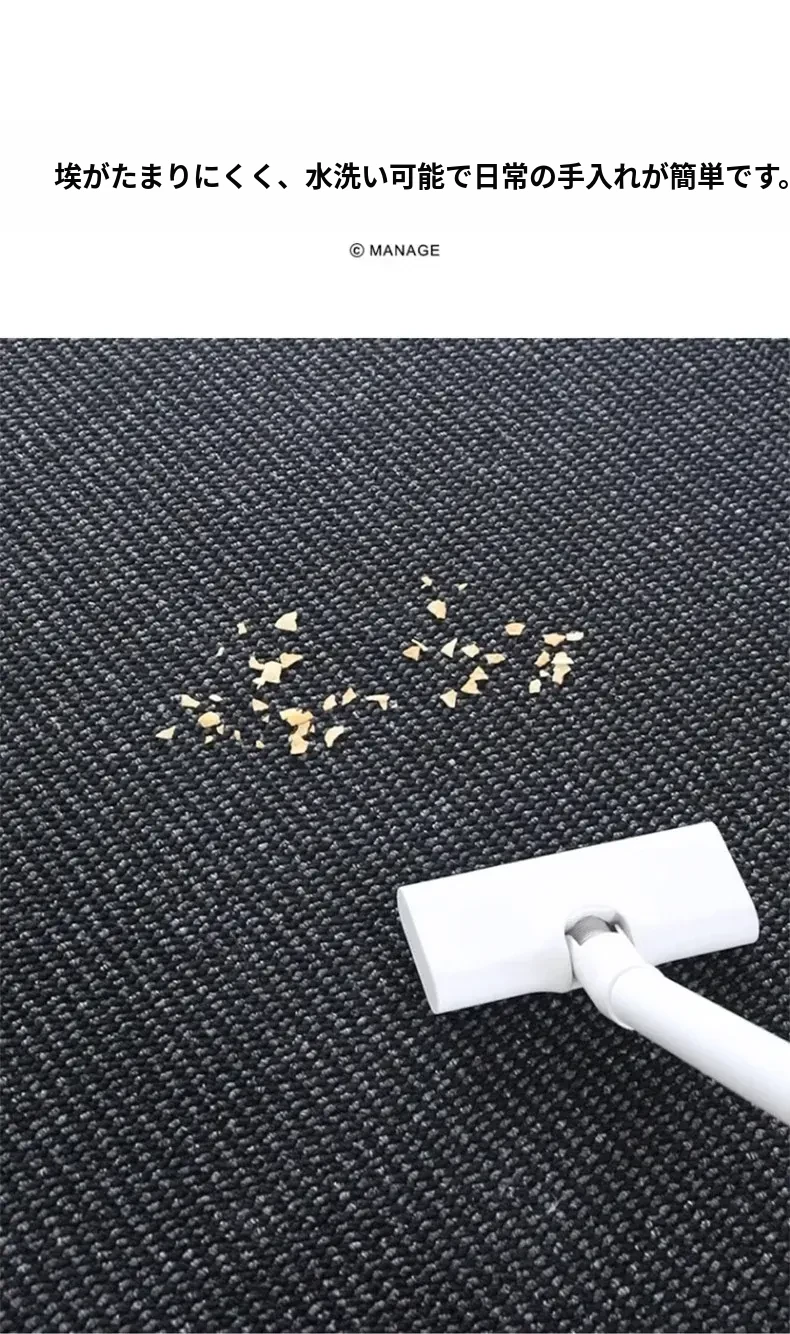 高級感あふれるブラックカーペット - イタリアンミニマリズムのリビングルーム用、シンプルなベッドサイドマット。汚れに強く、深い色合いで洗練された空間を演出します!