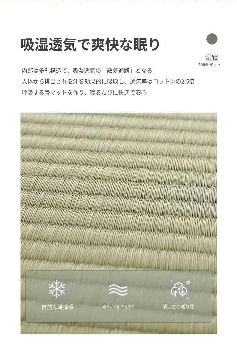天然イグサ製の和風クッションマット|リラックスできる昼寝用に最適な厚手折りたたみマット|オフィスでも快適に使える!