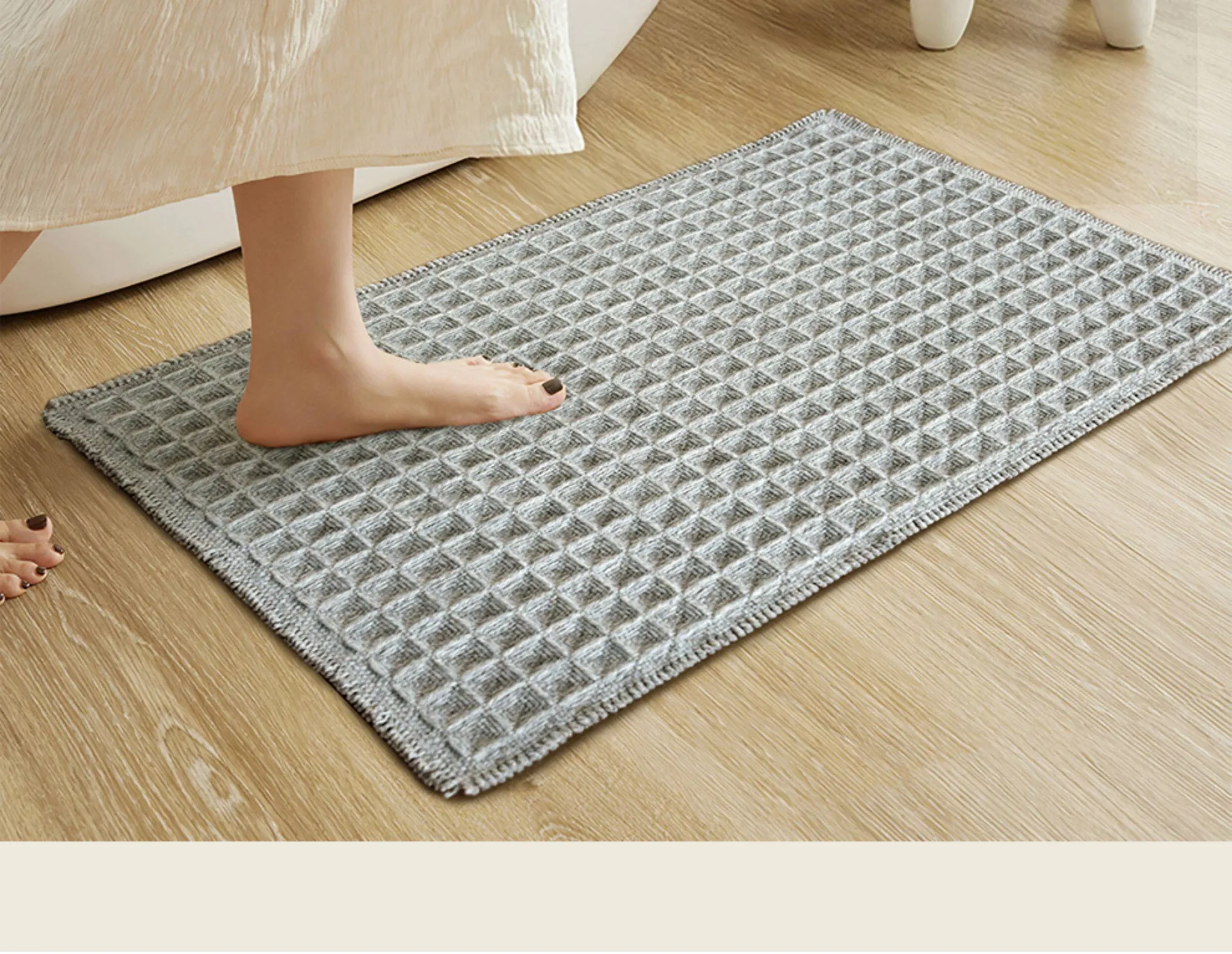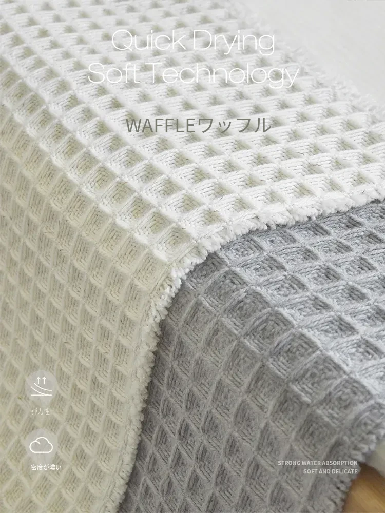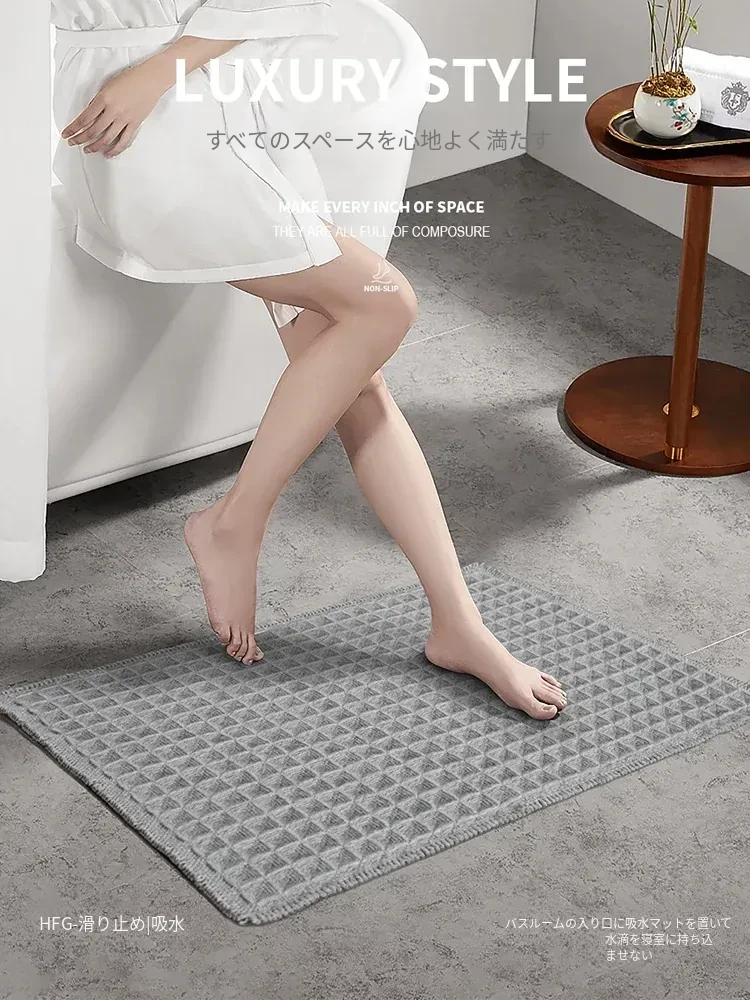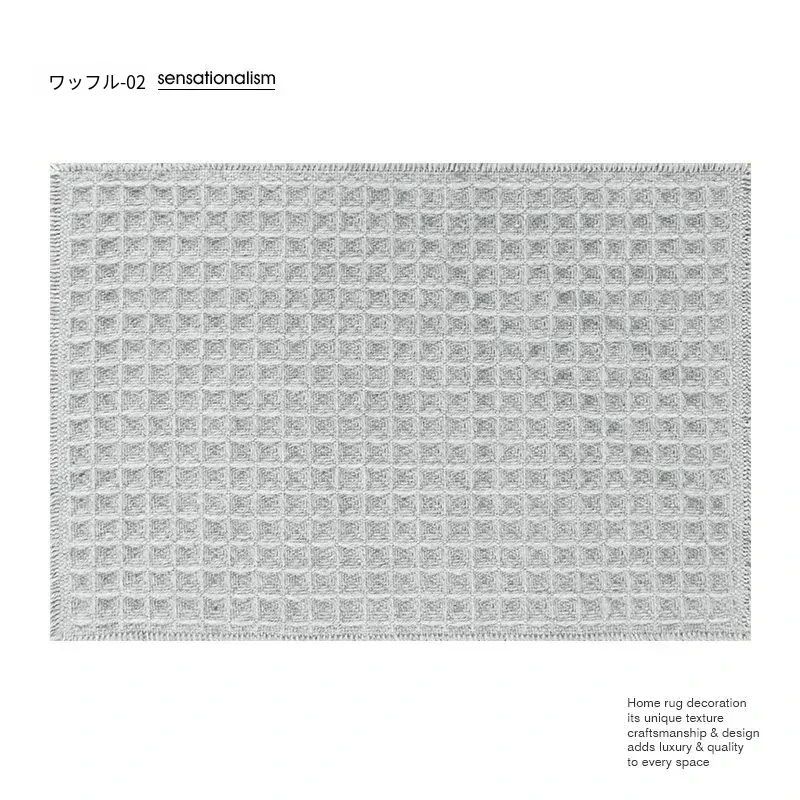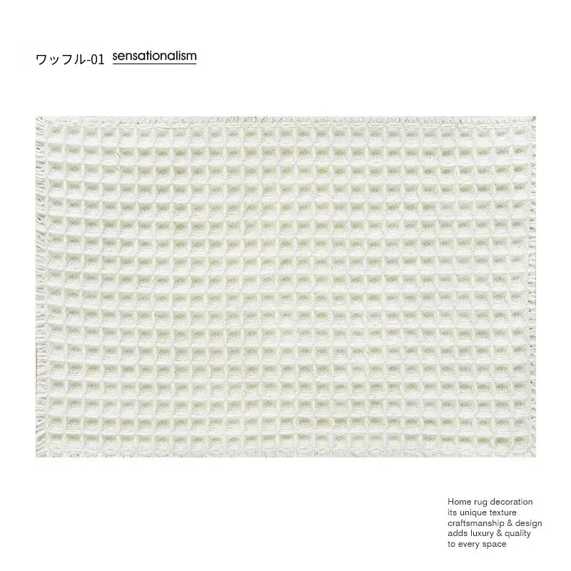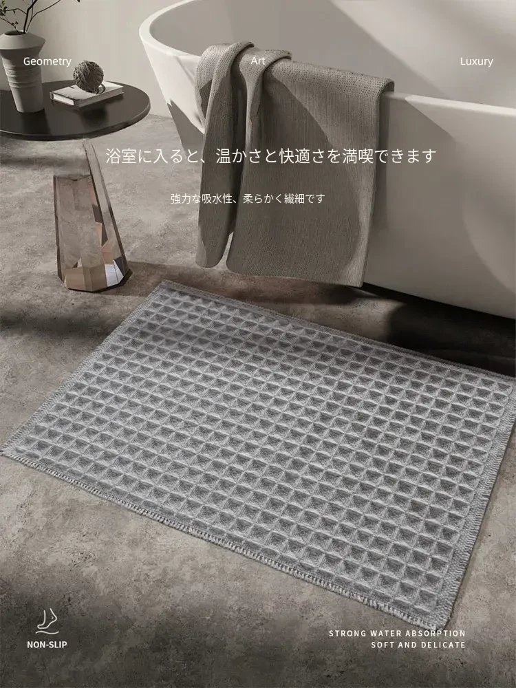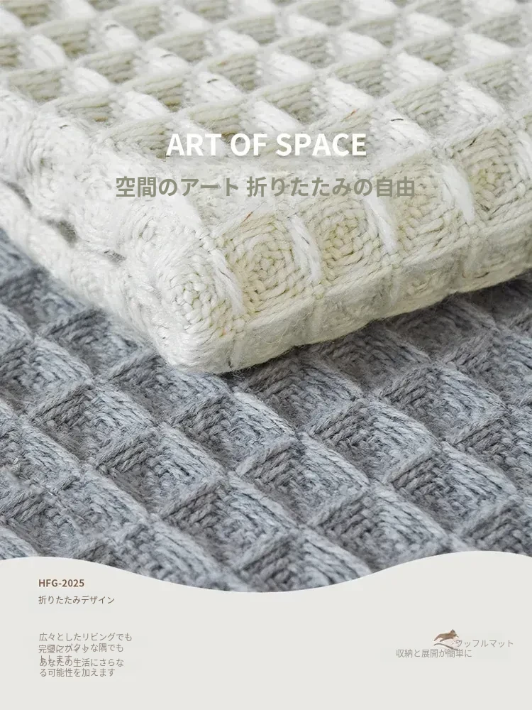 吸水性抜群!洗濯機で洗える、折りたたみ可能なホワイト&グレーのワッフルデザインウールブレンドマット。家庭用に最適、寝室やバスルーム、玄関にぴったり!