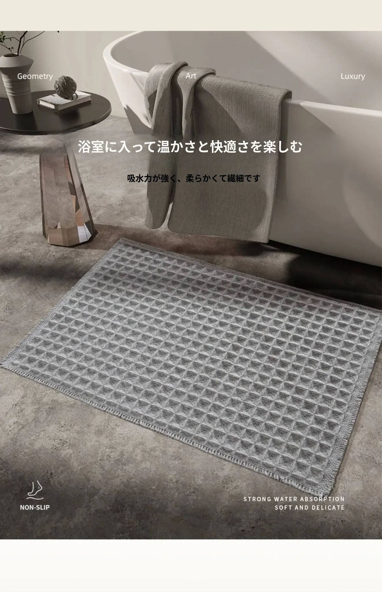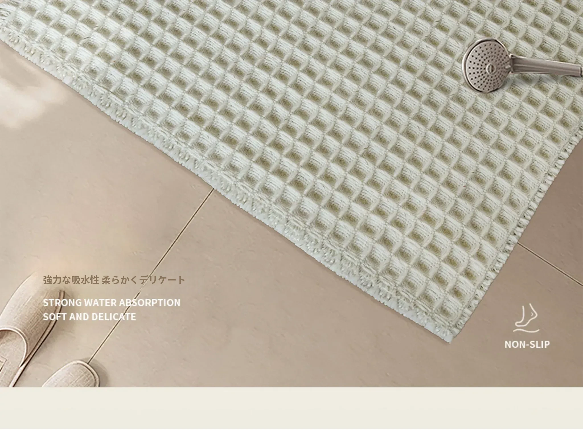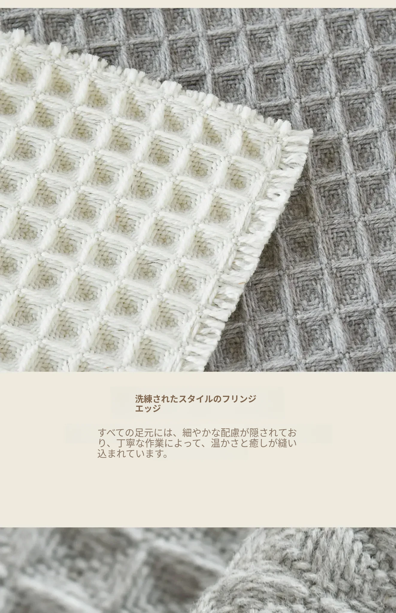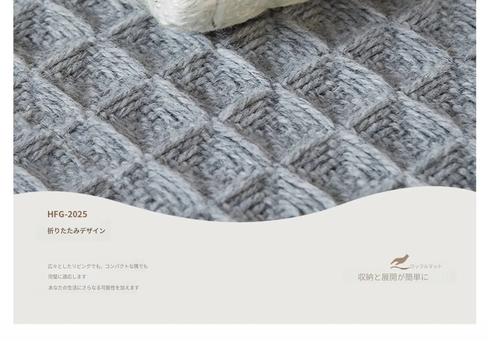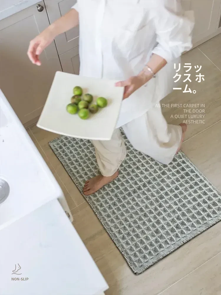 吸水性抜群!洗濯機で洗える、折りたたみ可能なホワイト&グレーのワッフルデザインウールブレンドマット。家庭用に最適、寝室やバスルーム、玄関にぴったり!