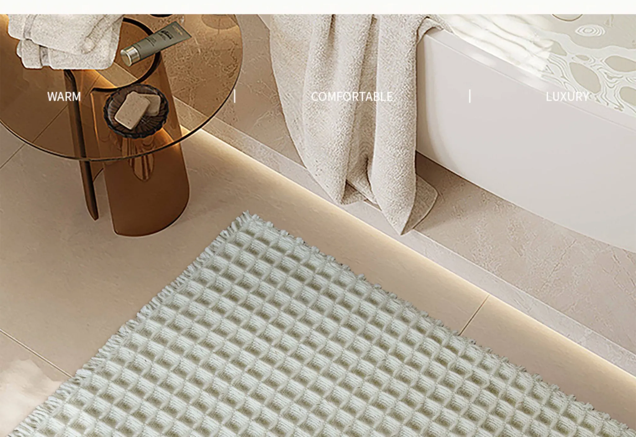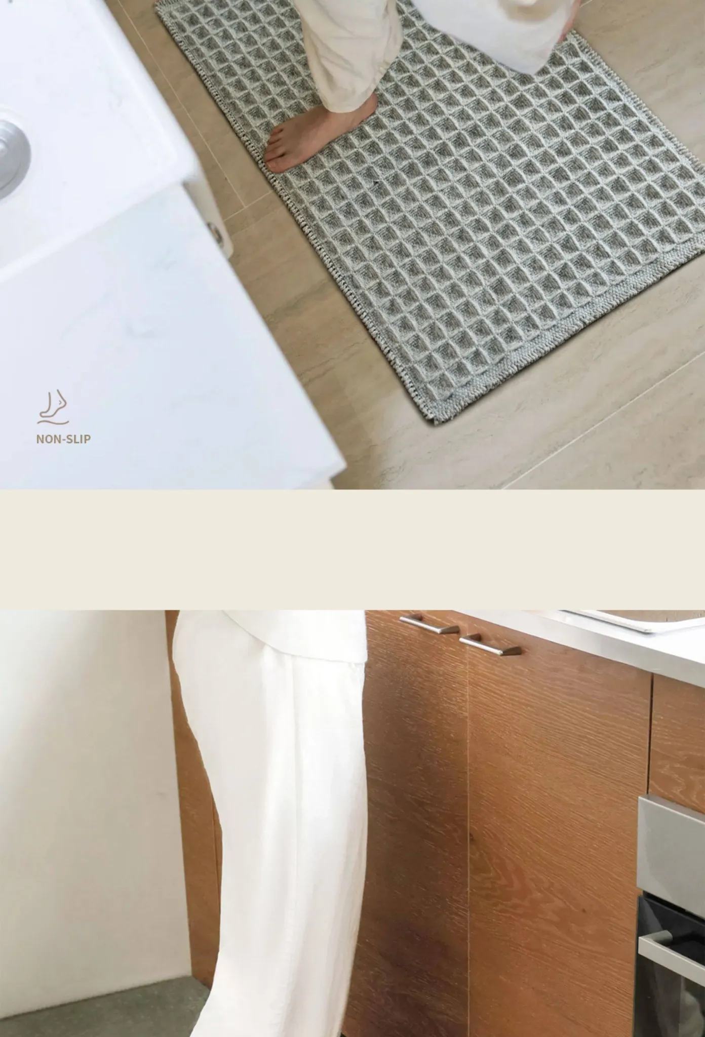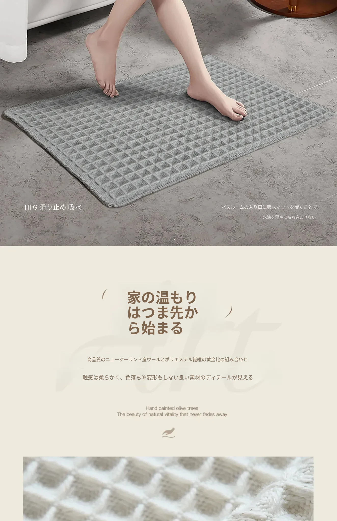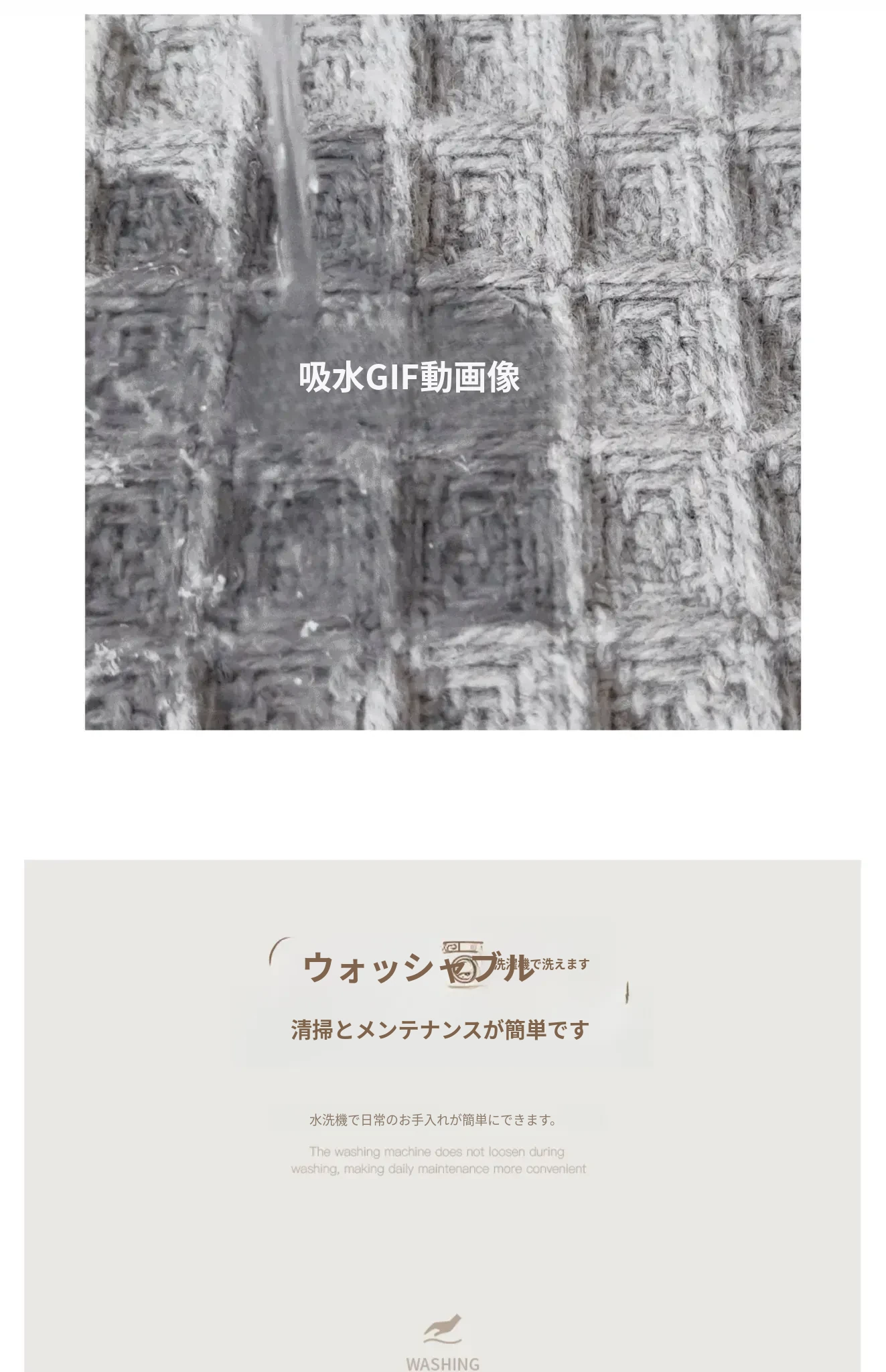 吸水性抜群!洗濯機で洗える、折りたたみ可能なホワイト&グレーのワッフルデザインウールブレンドマット。家庭用に最適、寝室やバスルーム、玄関にぴったり!